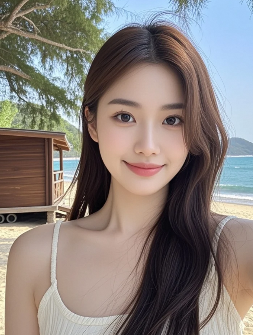 遮阳帽下的微笑,是海边最治愈的瞬间