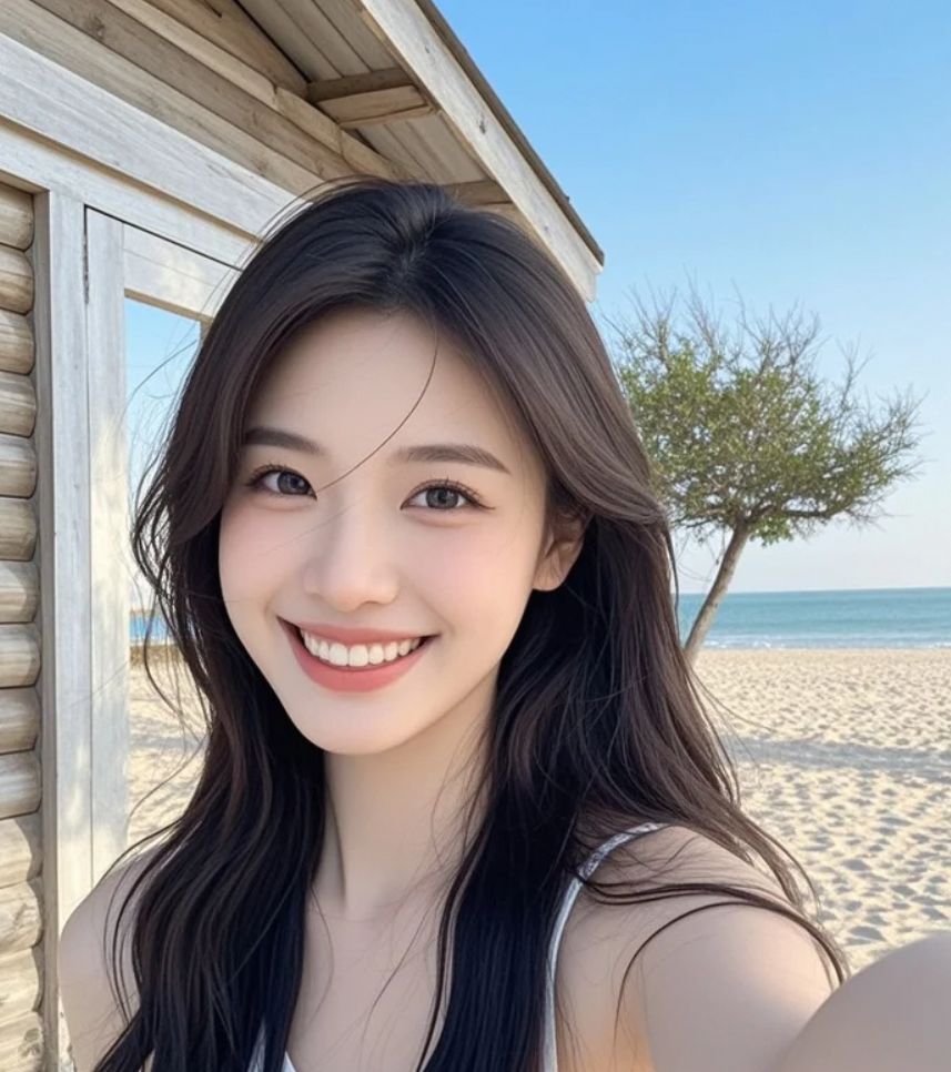 遮阳帽下的微笑,是海边最治愈的瞬间