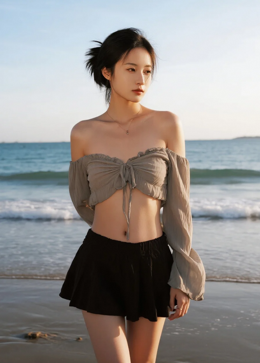 海浪亲吻沙滩,她与大海的温柔对话