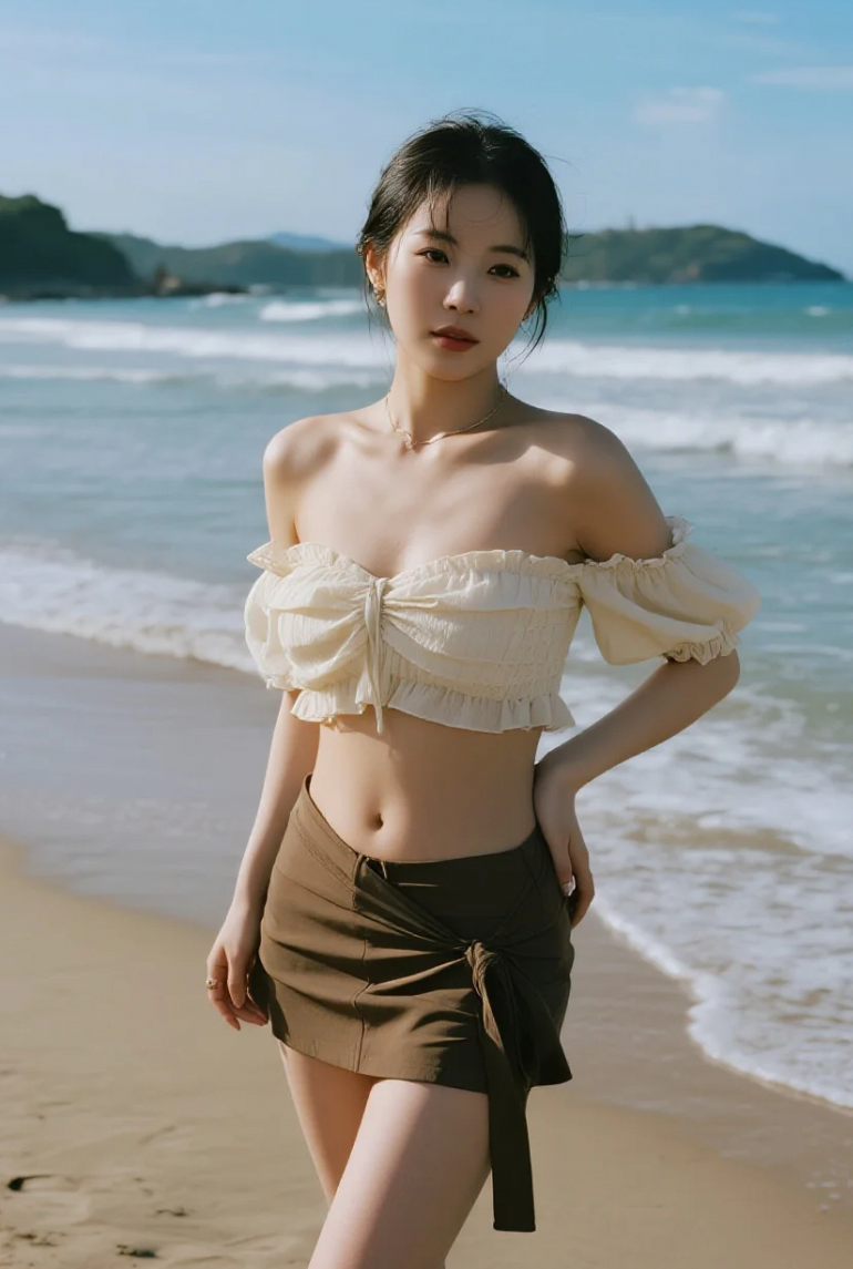 当裙摆邂逅海风,这片沙滩上演着温柔故事