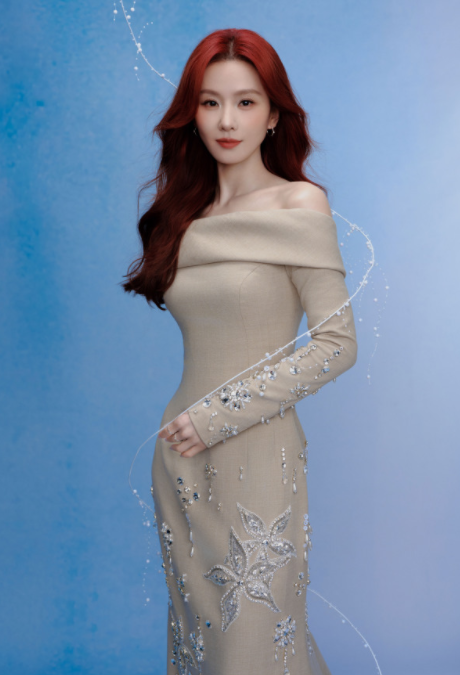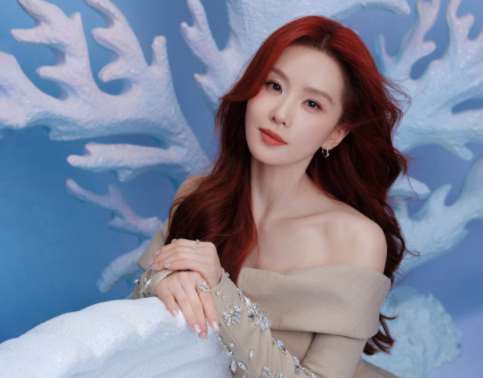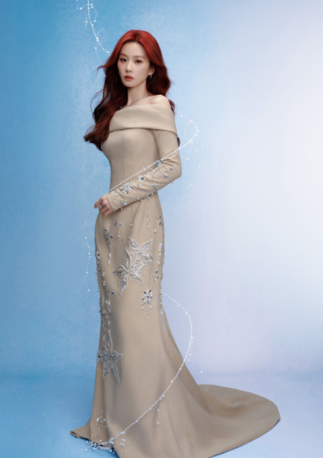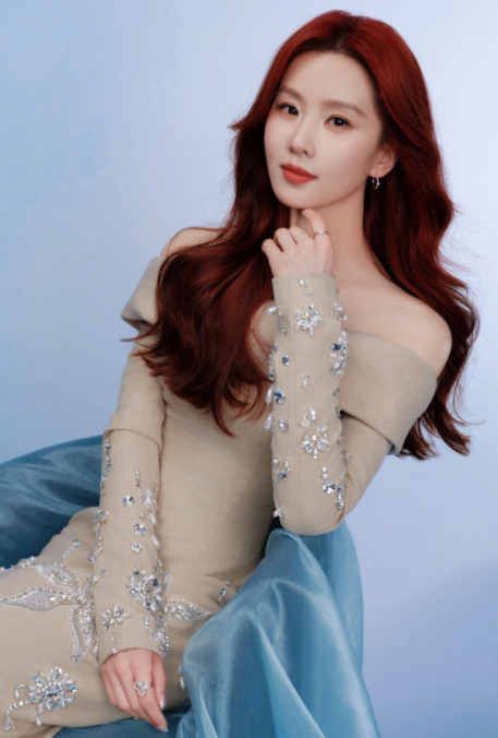 刘诗诗的红卷发搭配香槟色露肩裙,超可以的!