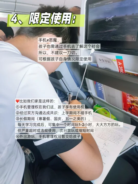 ③长假期间(寒暑假、国庆、五一之类的),每天学习完成后,可集中一个时间玩1-2小时,大大方方的玩。但严重超时或违规使用,次日禁玩或缩短时间