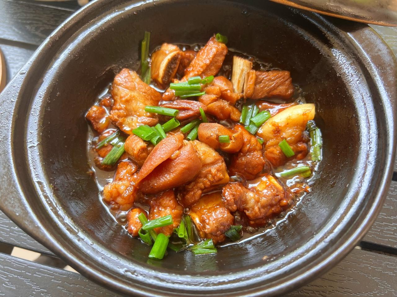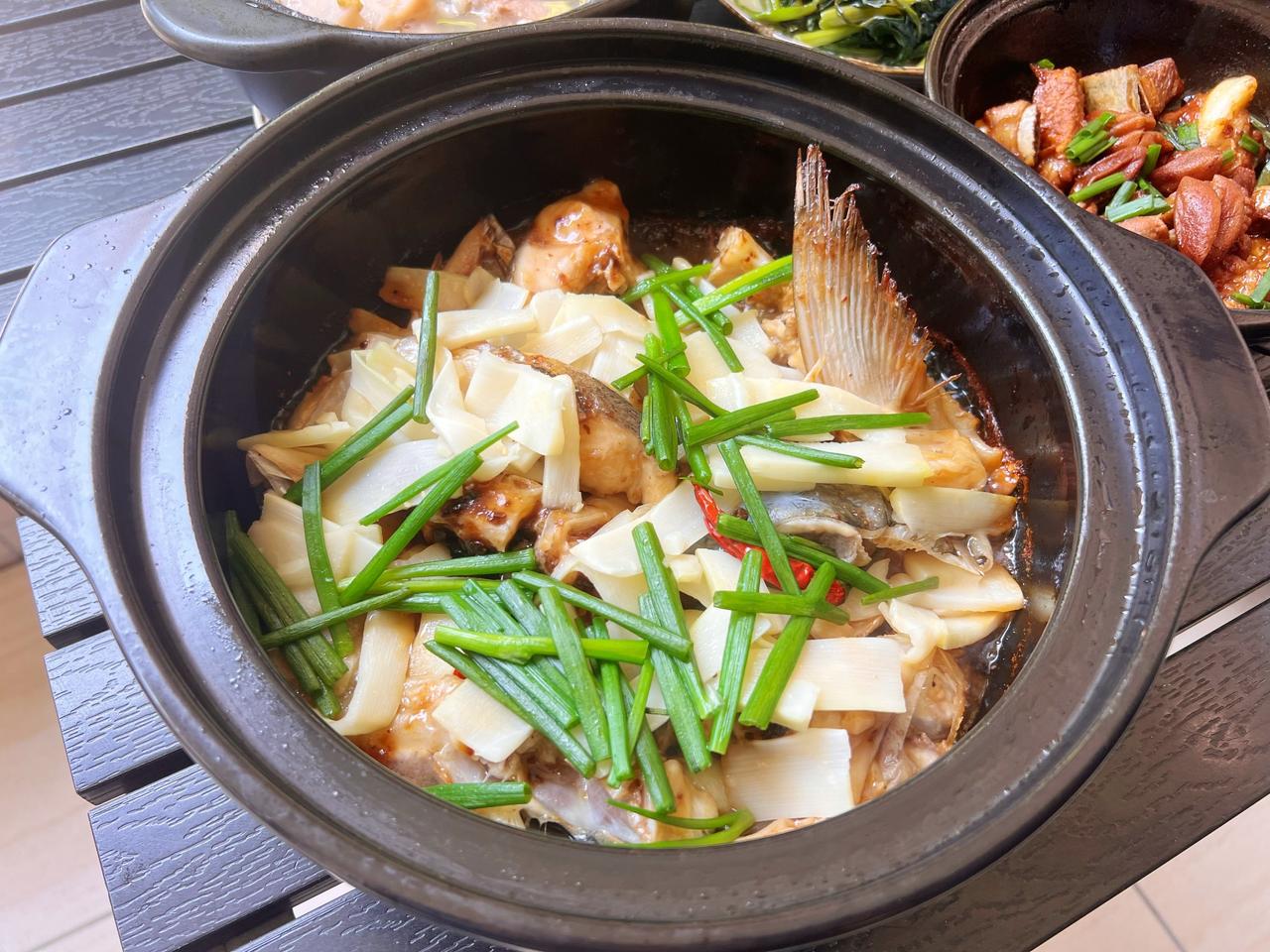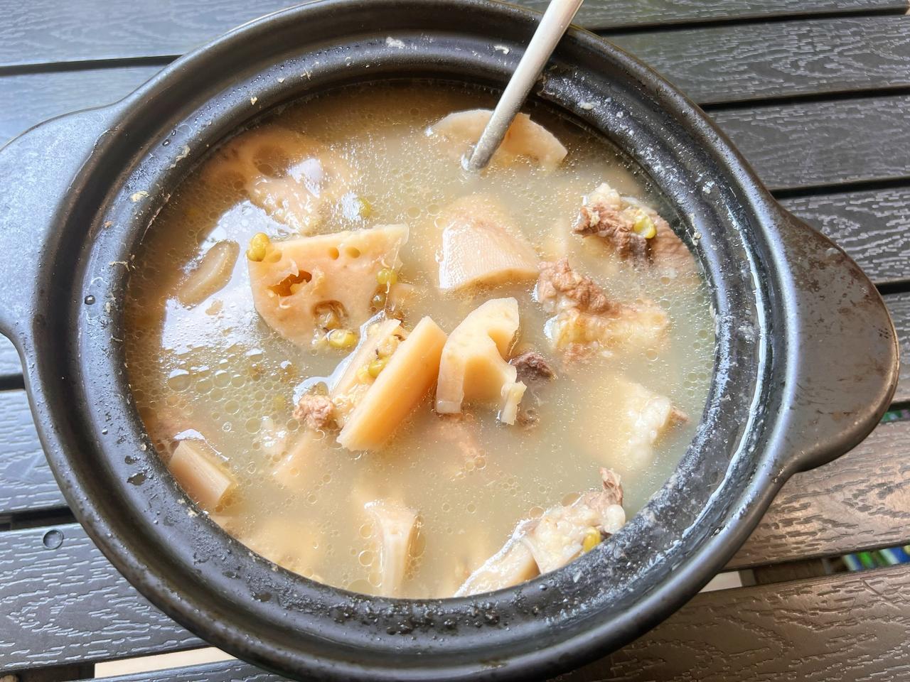 🍚两人食|夏天的三菜一汤,是我的用心呀~ 今天琢磨着给俩人做顿午餐,从食材搭配到下锅翻炒,每一步都藏着我的小心思,热乎乎端上桌的瞬间,觉得超满足~ 🐟【酸笋鱼头煲】 处理鱼头得耐心点,鱼鳃挖干净切块,用米酒+生抽+少许盐+砂糖+胡椒粉+淀粉抓匀,淋圈油锁住水分,腌15分钟以上才够味~ 砂锅爆香多量姜蒜(去腥关键!),平铺鱼头和酸笋,大火焗8分钟,沿边淋米酒增香,再焗2分钟撒葱段,借着砂锅余温焖一会儿,掀开盖那股酸香直钻鼻子,鲜得很! 🥣【莲藕绿豆排骨汤】 排骨不用焯水,用盐和淀粉搓洗几遍去油脂,炖出来的汤才清亮~ 莲藕削皮切小块,孔里的泥沙冲干净,和排骨、一把绿豆一起下锅,大火烧开转小火炖1小时,加盐调味就成~ 夏天喝这个太合适了,绿豆清热,莲藕粉糯,我俩分着喝,清爽又滋润~ 🍖【黄皮焖排骨】 排骨直接下炒锅,热油煎到两面金黄(逼出油脂不腻口),淋米酒+生抽+老抽+砂糖+少许蚝油,放几颗蜜饯黄皮增味,加清水烧开后转砂锅,小火焗20-30分钟收浓汁,撒葱粒出锅~ 黄皮的酸甜混着肉香,我俩边啃边说“够味”~ 🥬【腐乳炒通心菜】 蒜末爆香,加腐乳压碎炒出香味,大火放通心菜快炒,最后撒点盐(腐乳有咸味,别多放!),翠绿的菜叶裹着腐乳香,清爽解腻,配肉吃刚好~ 和喜欢的人分食这桌菜,筷子碰着碗的叮当声,比啥都治愈~ 家常菜