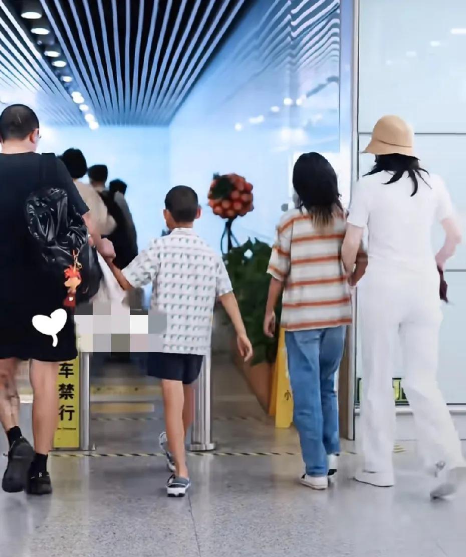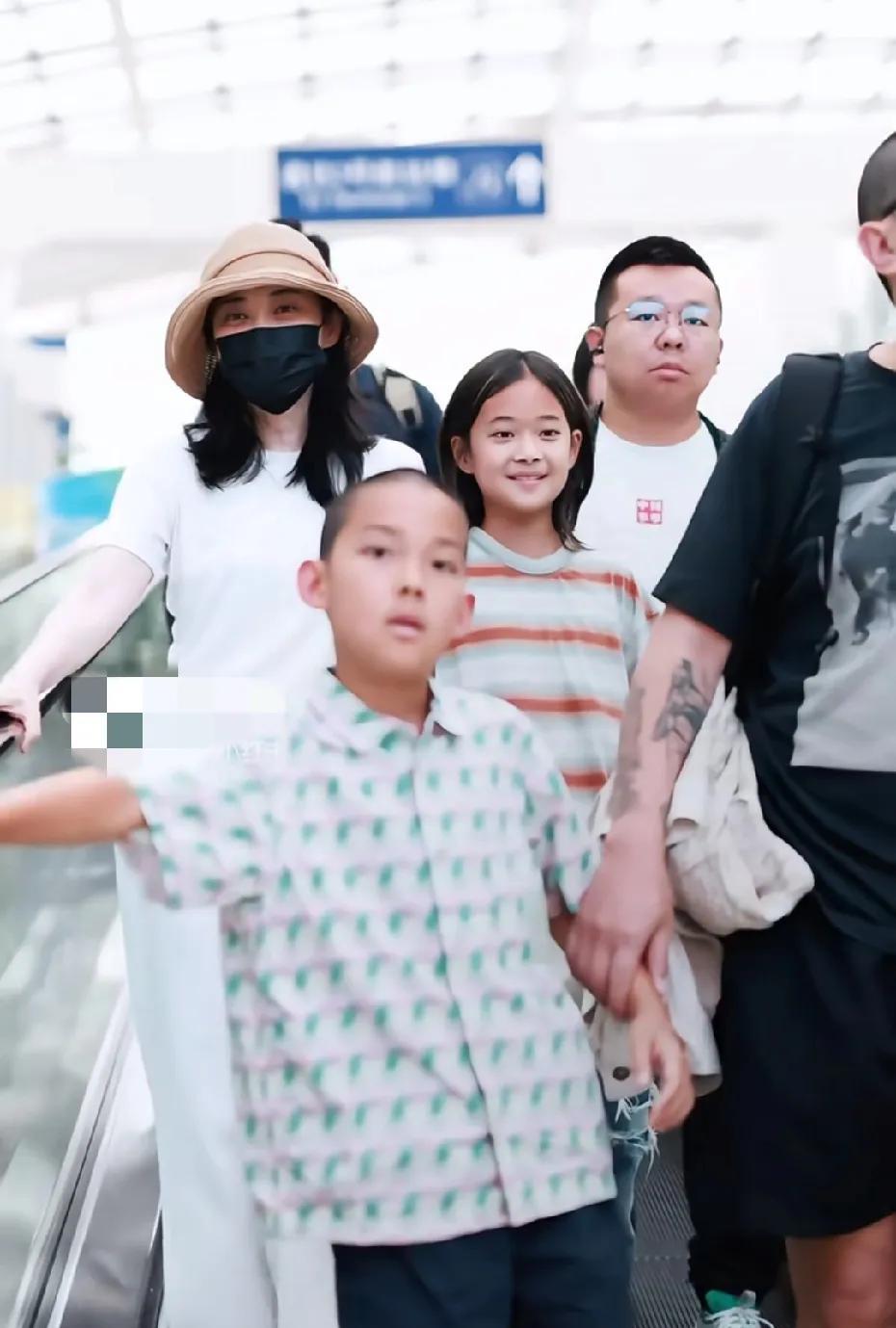梅婷一家四口现身机场,快快长成大姑娘了,梅婷老公长的好像汪峰