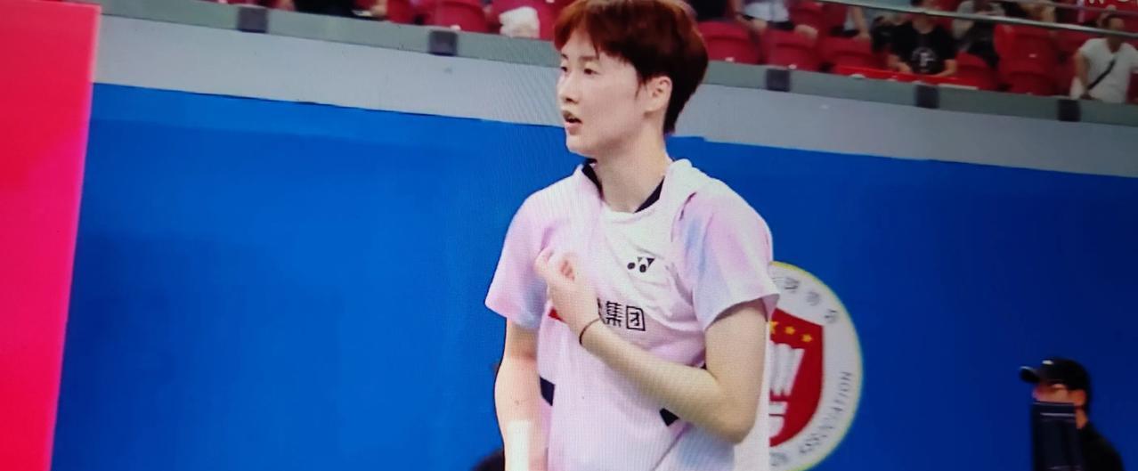 在宜昌举办的第十五届全运会羽毛球资格赛,陈雨菲代表浙江队对阵辽宁队的刘雨馨。