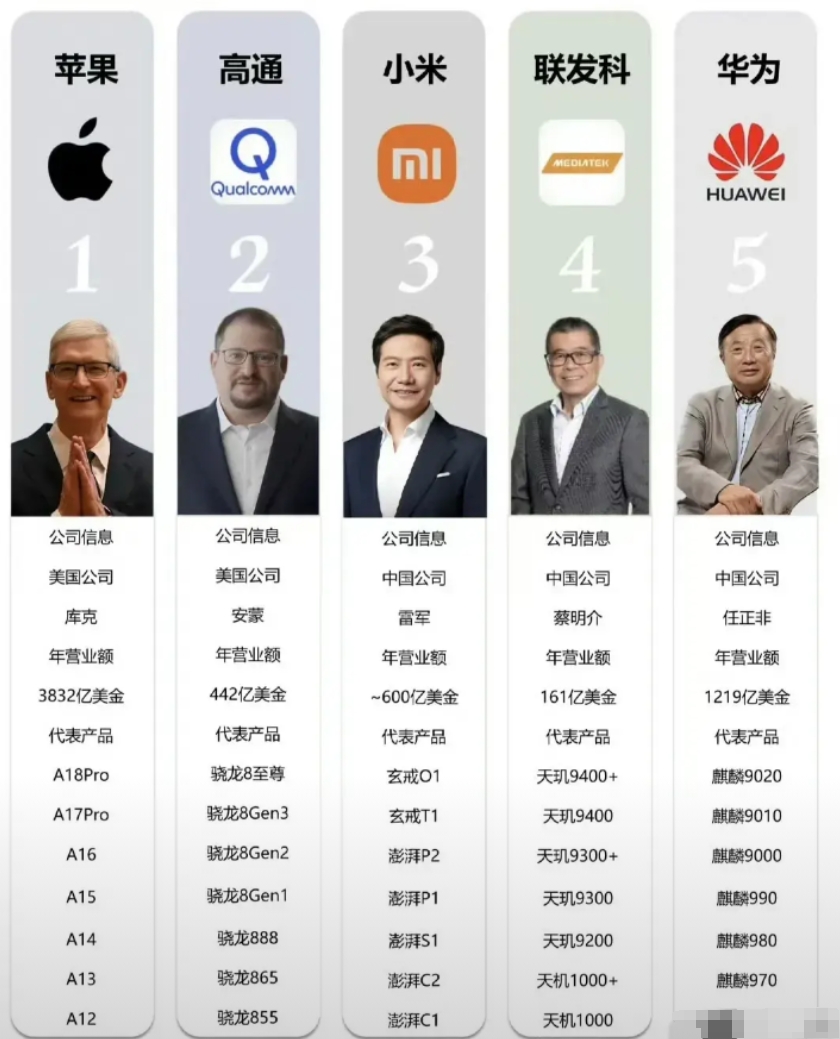 全球唯五的自研芯片的厂商!小米居然排行第三,大家觉得排名合适吗?