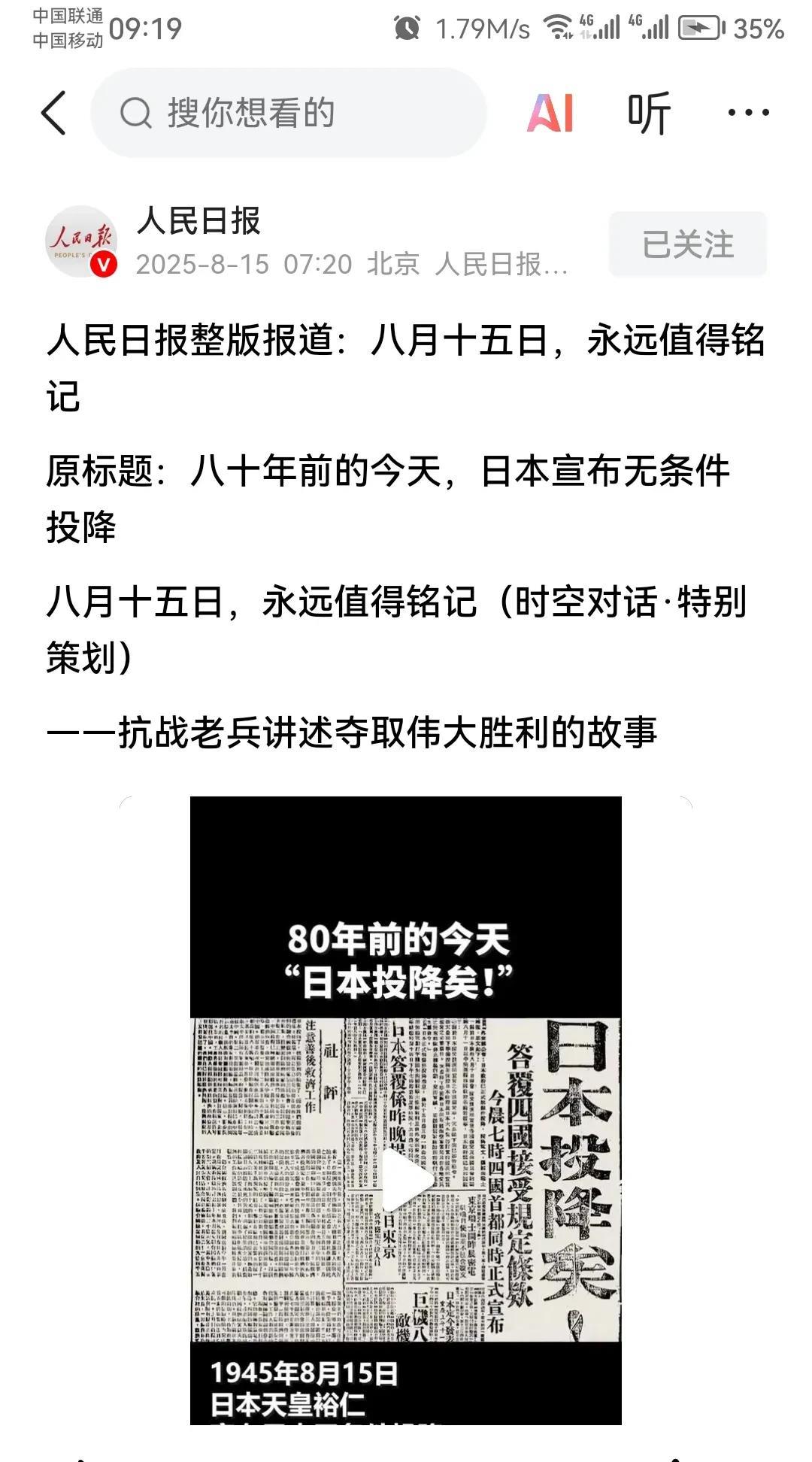 央视新闻,人民网日报,新华网: 80年前的今天,日本宣布无条件投降! 中国14年抗日战争迎来最终的胜利! 勿忘历史! 吾辈自强!
