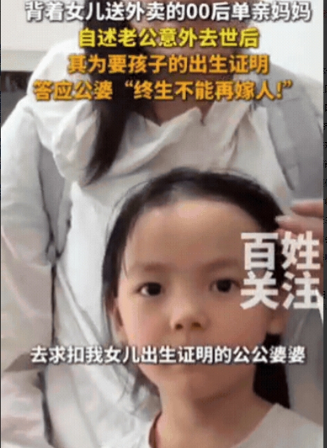 这个恶婆婆火了!安徽,背着女儿送外卖的00后单亲妈妈,只是想给孩子上户口,没想到,公婆竟然提出过分要求,让她必须答应“终生不能再嫁人!”才会把出生证明给她,女子为了让给女儿能上学,不是黑户!不惜答应了公婆所有条件!说完这些,女子在视频里哭了!