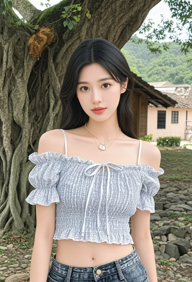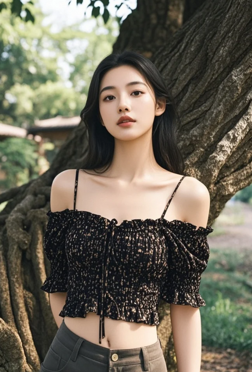 一树浓荫,一人静立,她在榕树下,美得像一首老民谣。