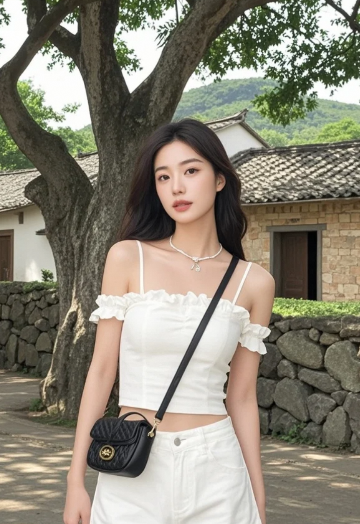 榕树下,她赤脚走过青石板,脚步轻得像童年记忆。