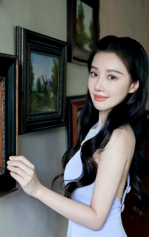 王鹤润的紫色露背连衣裙,超迷人的!