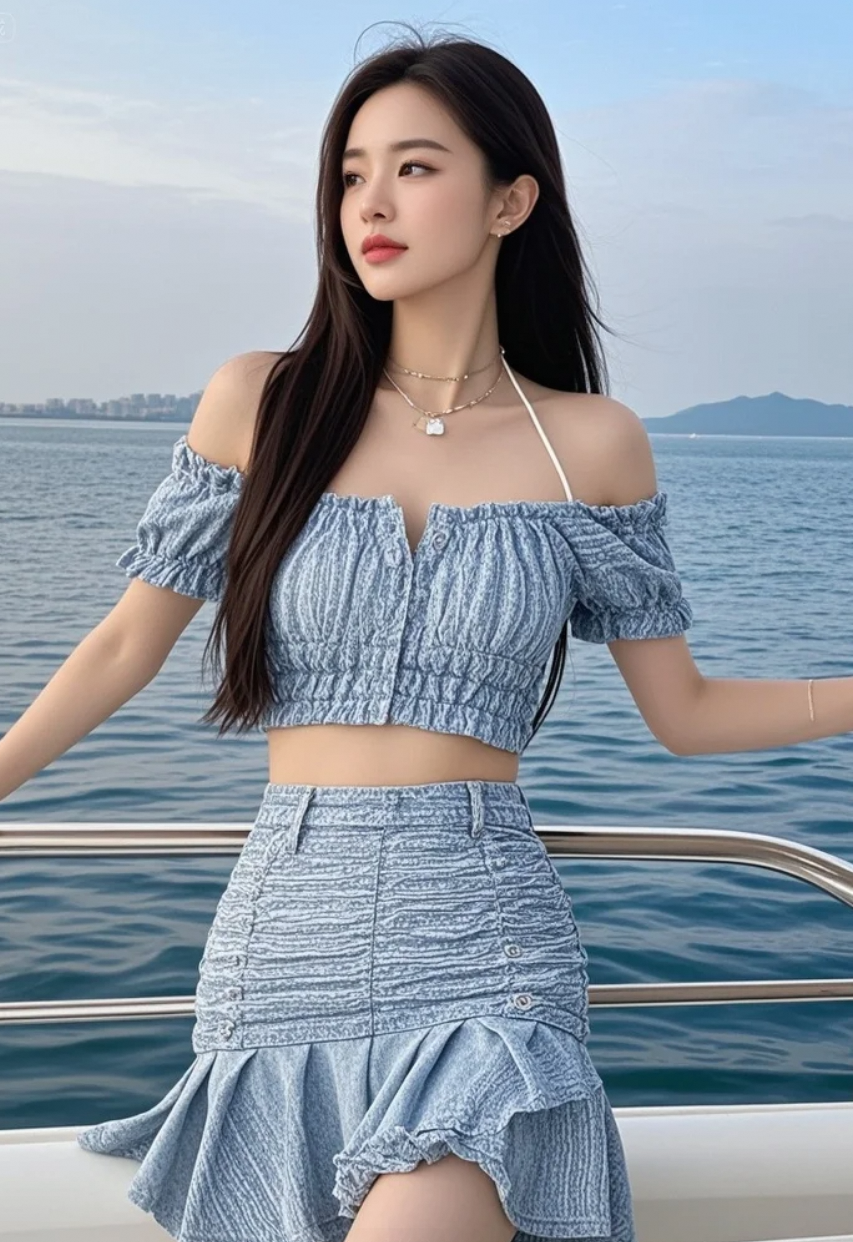 她凝望深蓝,如同凝望自己灵魂的倒影。