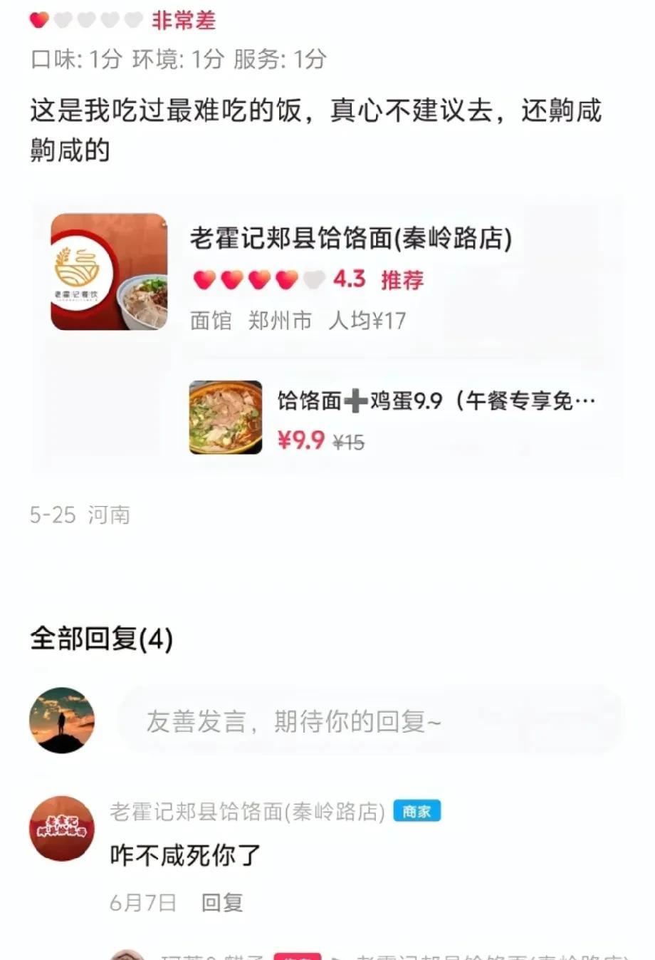 郑州那家发视频曝光顾客多次“续面”的面馆够呛了——1000多网友去给差评!而据