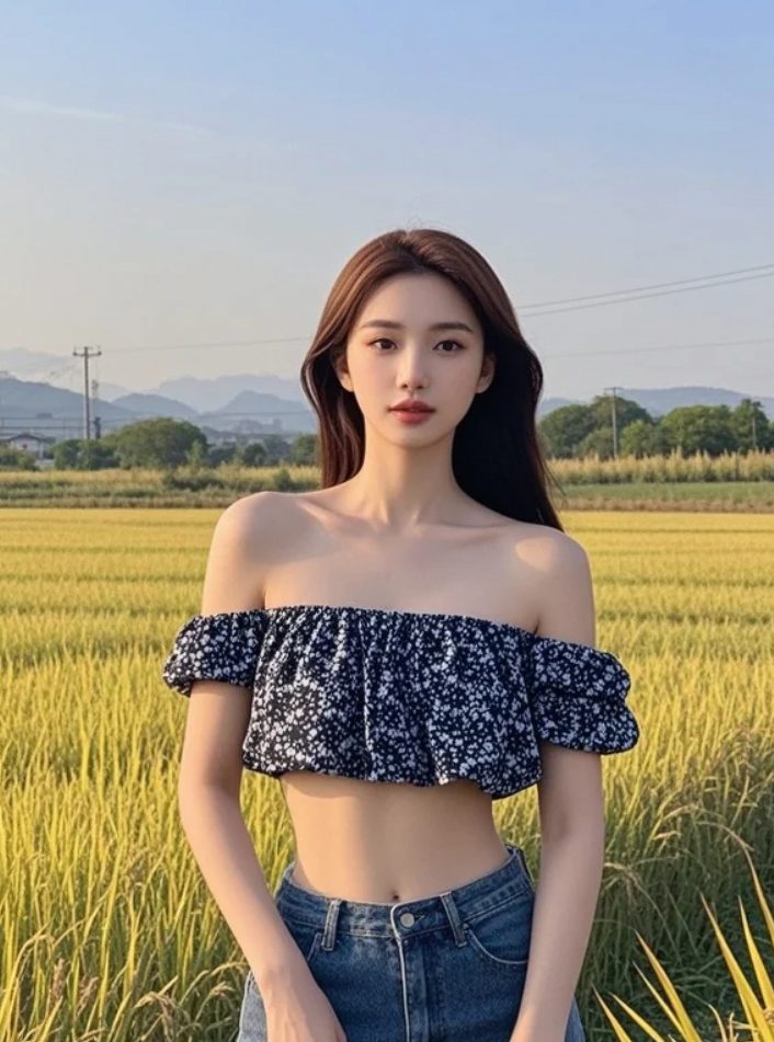 稻穗低垂,如同她温柔的目光,轻轻拂过大地。