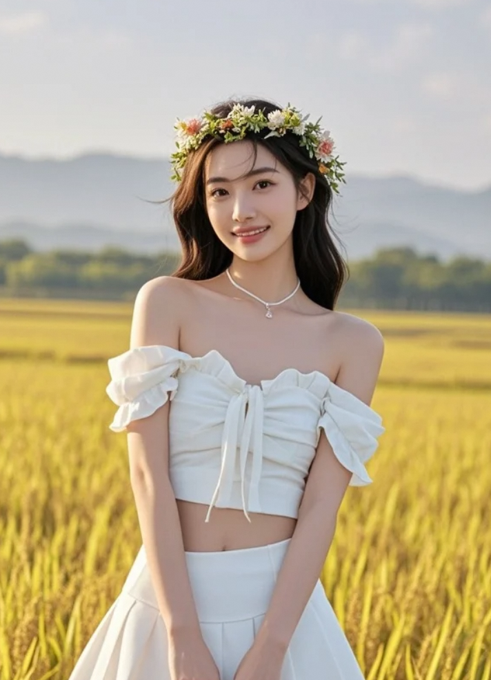 她仰望天空,稻穗在脚下翻涌,心却飞向云层之上。