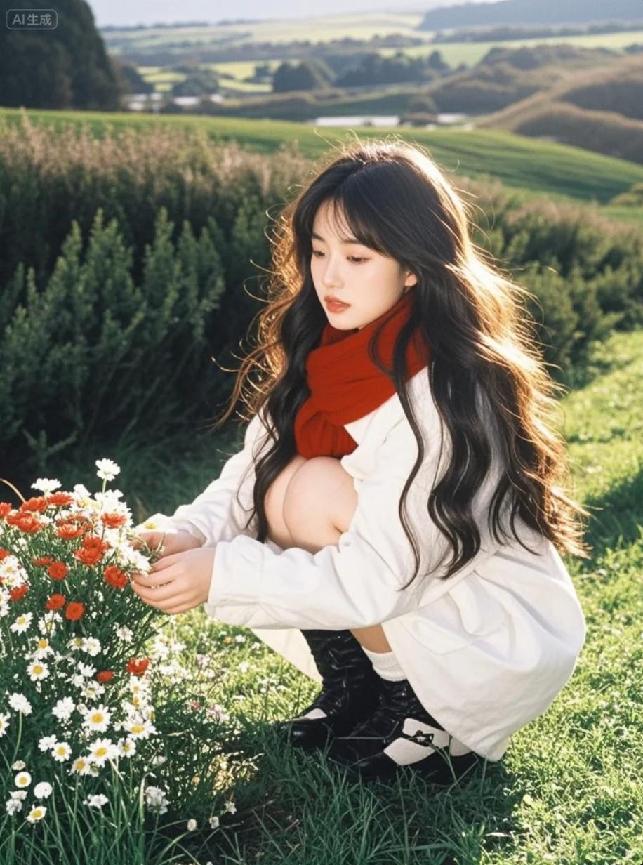 阳光穿过指缝,她在草地上画梦
