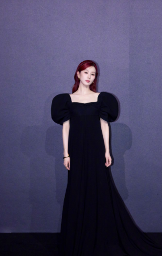 刘诗诗的红发搭配黑色裙装,一样的迷人!
