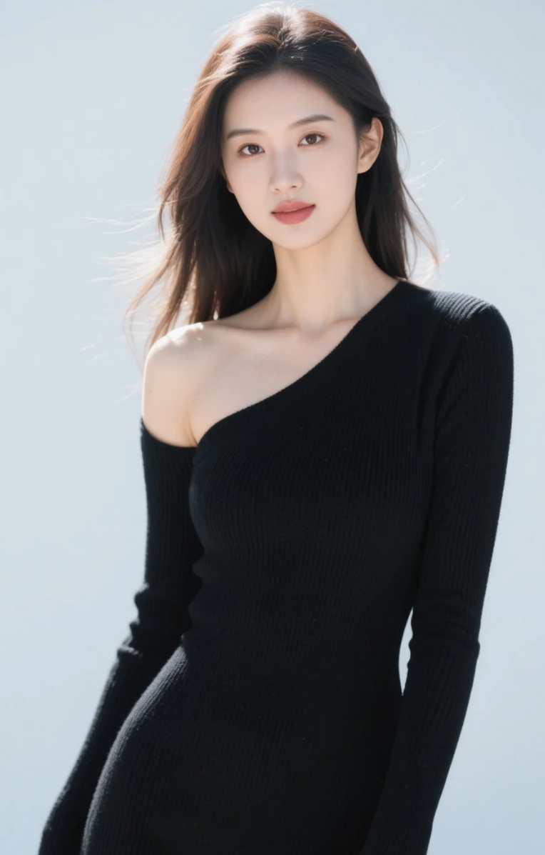 黑色毛衣裙勾勒曲线,光影为她写下诗行