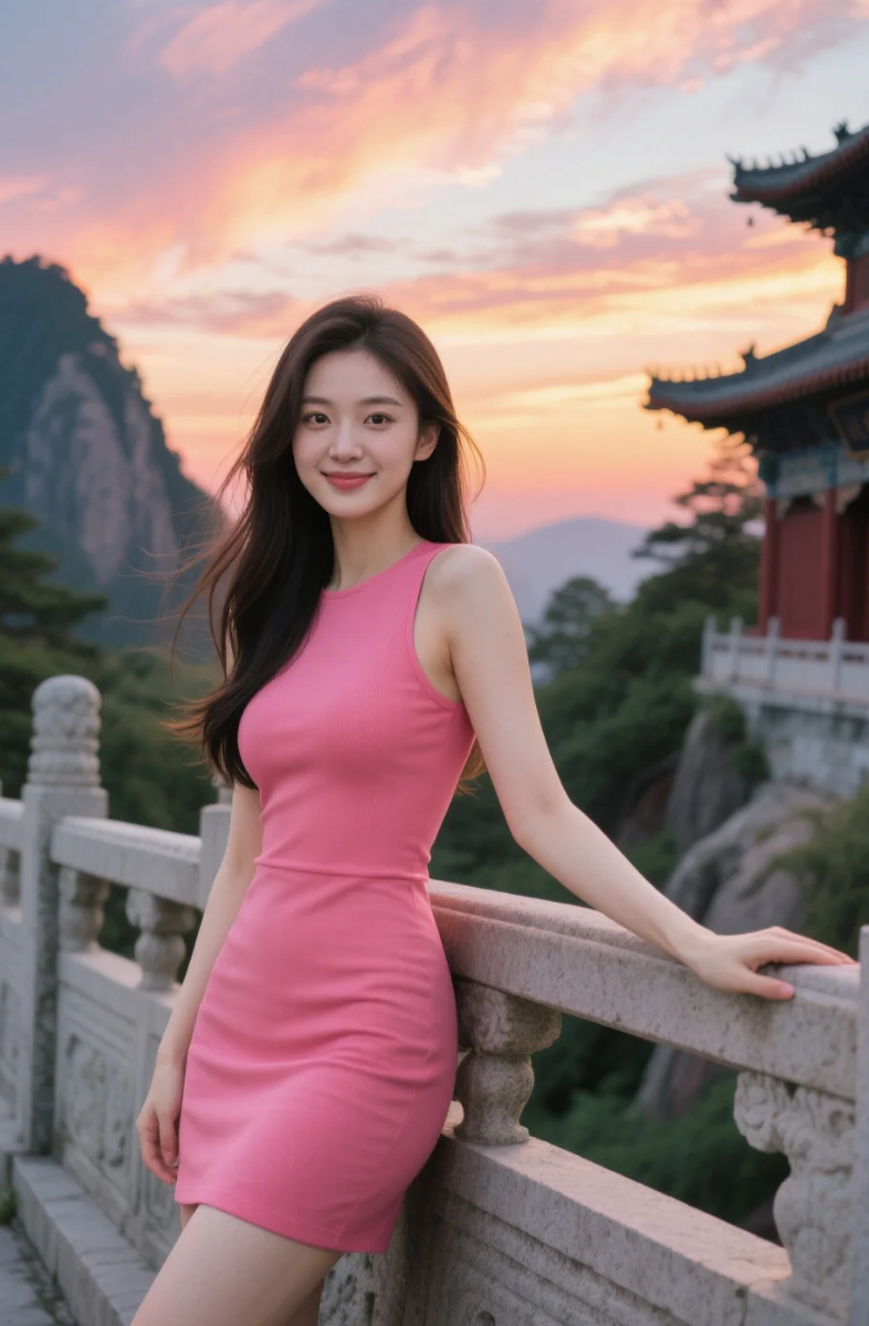 玫红裙摆遇上晚霞,她在老君山等一场心动