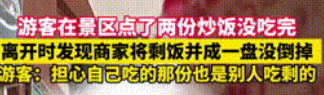 彻底解释不清了!”上海,一男子在景区点的2份炒饭没吃完,可就在他打算离开时,竟发现商家把2份并成一盘没倒掉!男子担心自己吃得是别人剩的,便上前提出质疑,可没想到商家的回应让他傻眼!网友:原来这就叫拼好饭! 8月17日,上海一家景区的饭馆里,杨先生和朋友刚用完餐,正准备离开,却无意瞥见令人错愕的一幕,只见店员将他们桌上剩下的两份炒饭倒在同一个盘子里,而旁边垃圾桶里扔的却是剩下的炒面。 杨先生心里顿时一沉,刚才吃的时候就觉得炒饭味道不太对劲,这下他忍不住怀疑,自己盘子里的会不会也是别人吃剩的? 他立刻上前询问,店员却只是含糊地解释:“等一下倒可以吗?”这样的回应显然无法让人信服,双方争执期间,店家提出补偿饮料,但杨先生拒绝了,他更在意的是食品安全问题。 事后,这段经历被发到网络上,迅速引发众多网友关注,而当地市场监管部门也很快介入调查,通过调取监控,执法人员表示暂未发现将回收食物再次销售的证据,但由于监控存在死角,调查仍在继续。 尽管没有坐实“二次售卖”,但餐厅将顾客剩余食物回收混合的行为,已经严重违反食品卫生规范,目前,该餐馆已被要求停业整顿。 外出就餐本是件愉快的事,谁都不愿意吃到他人剩下的食物,餐饮行业经营的核心是信任,一旦失去消费者的信任,再多的解释都显得苍白。 这次监管部门反应迅速,及时要求停业整顿,值得肯定,但更重要的是,餐饮从业者应当真正把食品安全放在心上,而不是等到曝光后才匆忙补救。 大家聊聊,你在外就餐时,是否也曾遇到过这样让人不放心的状况?