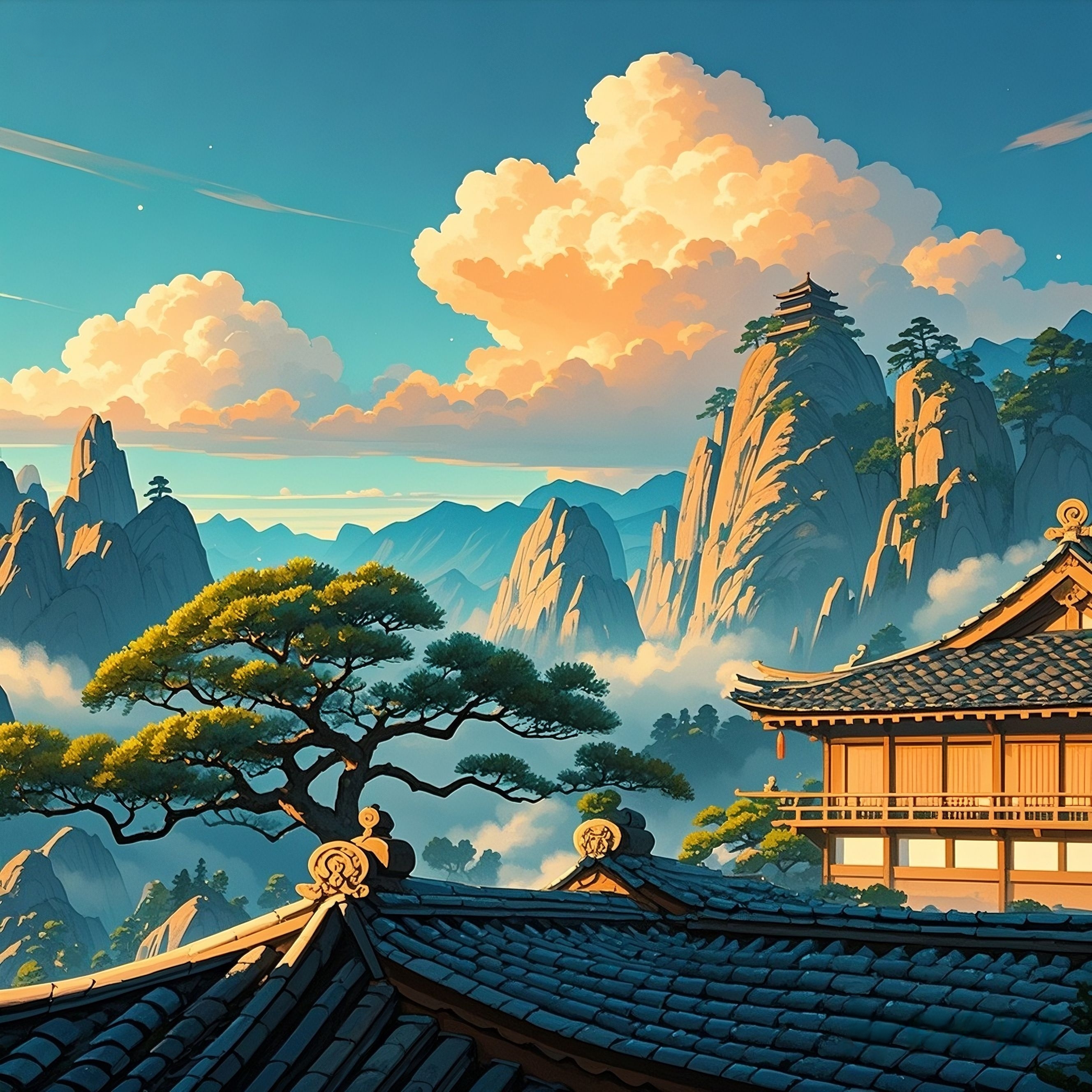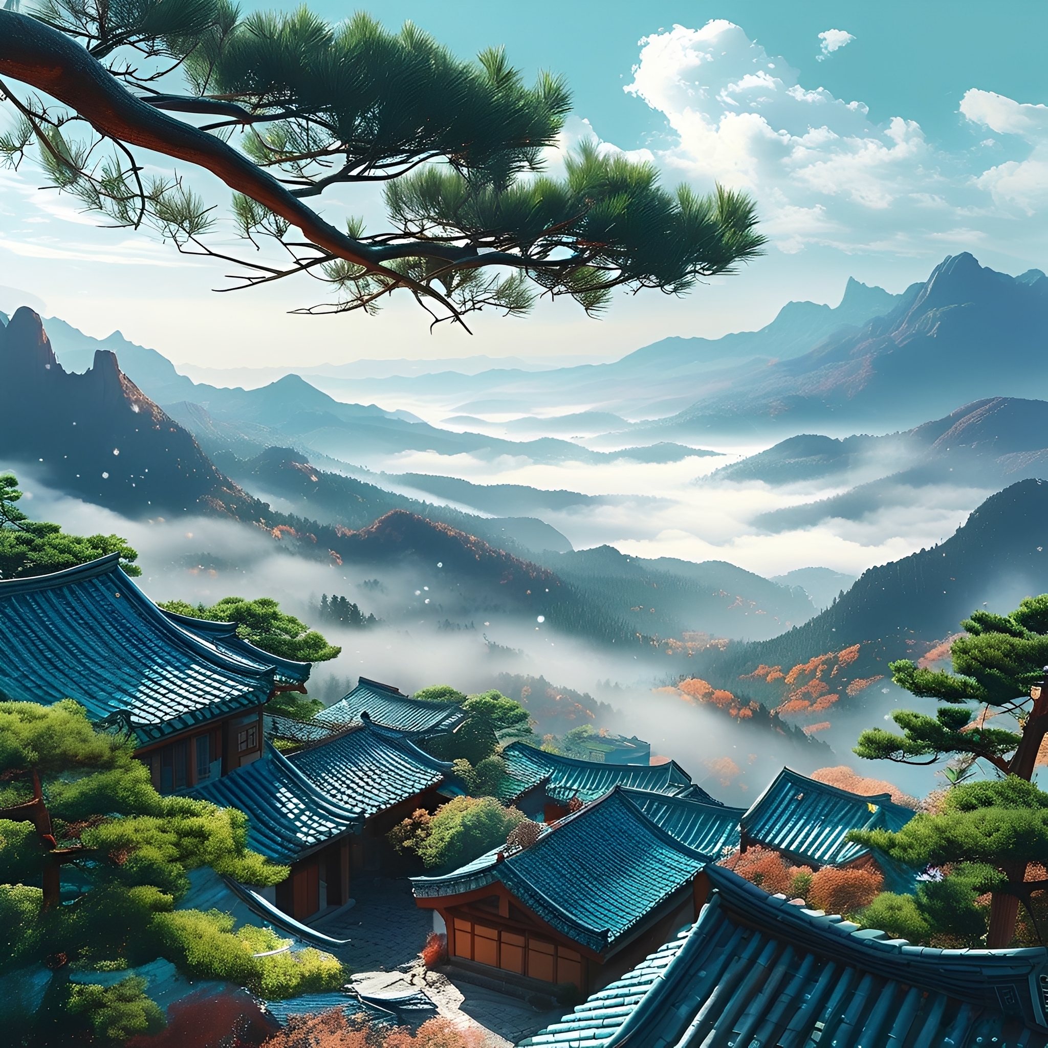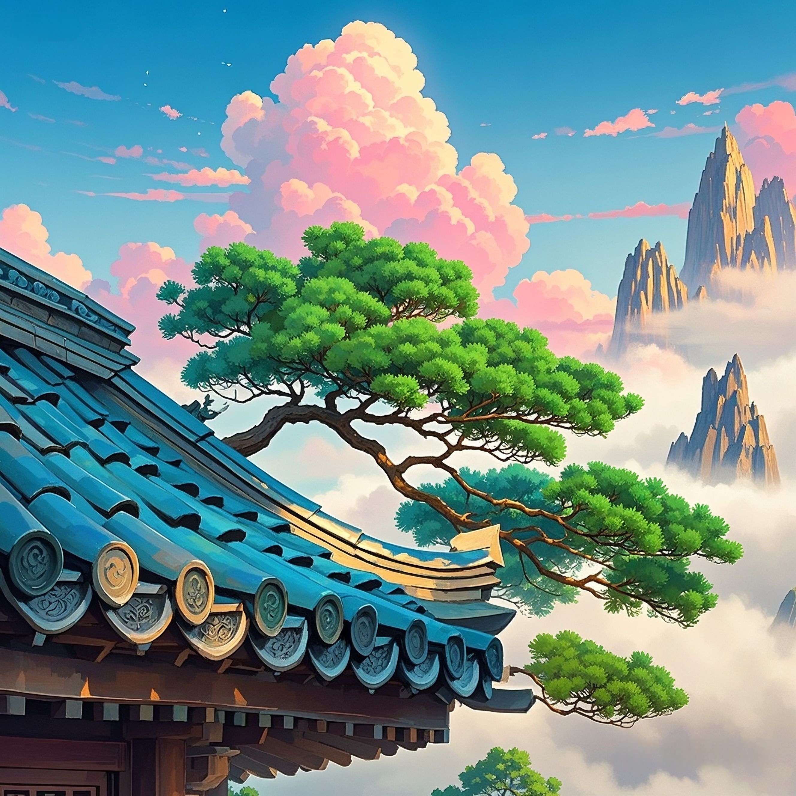 松枝斜入青瓦片间,天光与尘色在此缔约,是风经过时檐角的轻颤,是山雾在松针间暂驻的薄影。