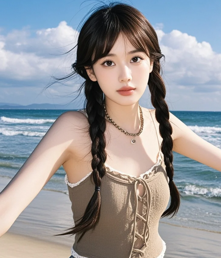 她靠在栏杆上看海,美得像一首未唱完的歌