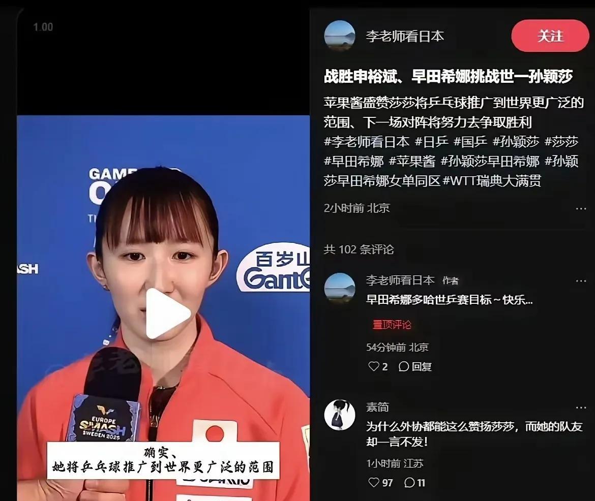 莎莎是早田希娜永远无法翻越的大山,昨天莎莎再次以3-0横扫早田,创下了对早田17
