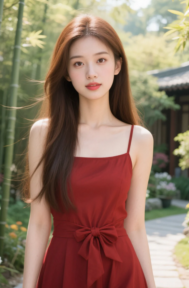 少女将一束彩色麻花辫甩向湖面:“看,我把彩虹丢进水里啦!”