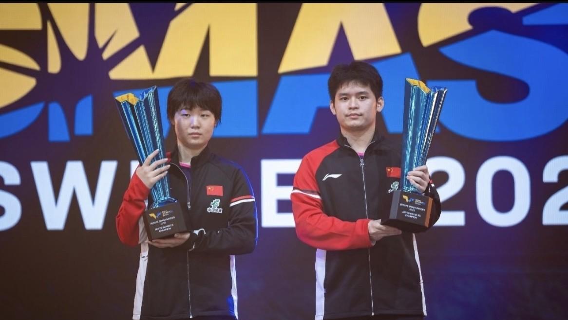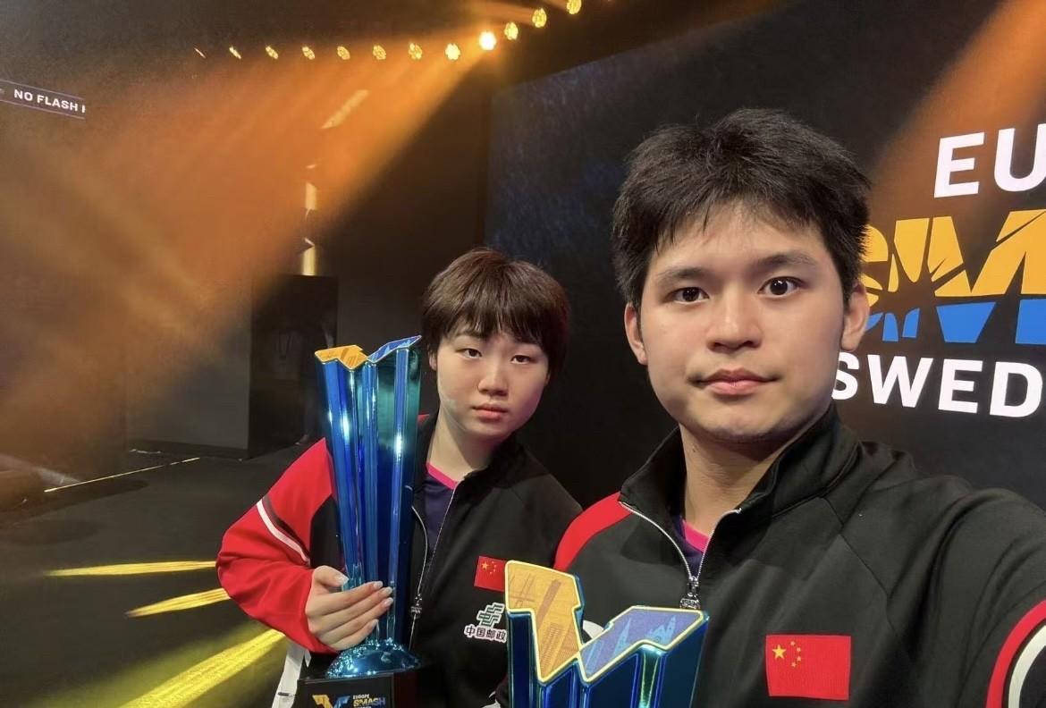恭喜林诗栋、蒯曼这对“小可爱”再夺桂冠! 瑞典大满贯混双决赛中,小石头小蔓姐火力