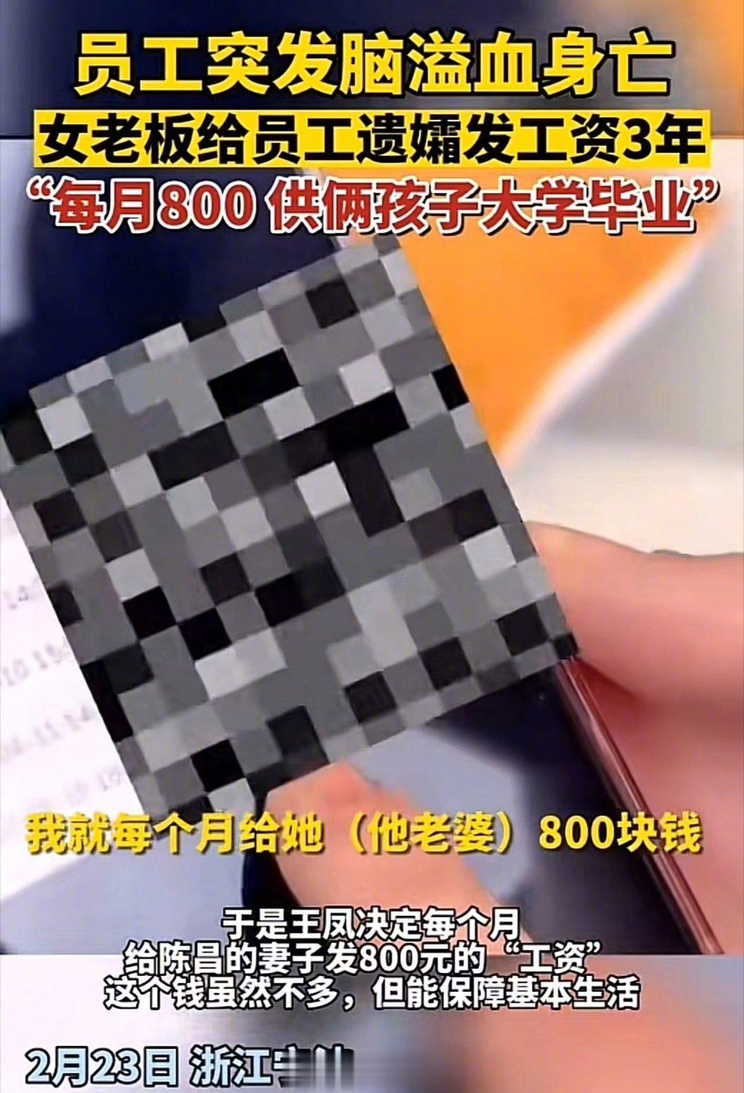 浙江宁波,一名员工在宿舍洗澡,突发急性脑溢血去世。女老板了解到员工家庭困难,坚持给去世员工遗孀发了3年“工资”,打算发到2个孩子大学毕业能独立工作赚钱为止!女老板:我是农村出来的孩子,曾经我也淋过风雨,所以想给他们撑把伞!
