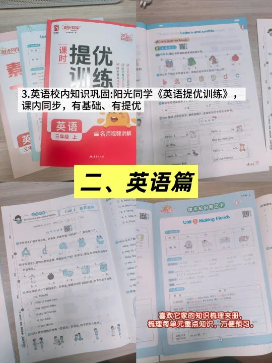 [打卡R]校内知识巩固:阳光同学《英语提优训练》,除了课内同步练习外,也比较喜欢里面的知识梳理夹册,对每课知识点进行梳理,方便提前进行预习