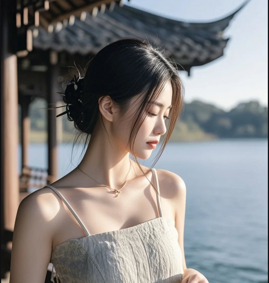 江水悠悠,柳影婆娑,她美得让黄昏都慢下来