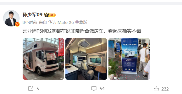 孙少军: 都说比亚迪适合做房车,看起来确实不错 !