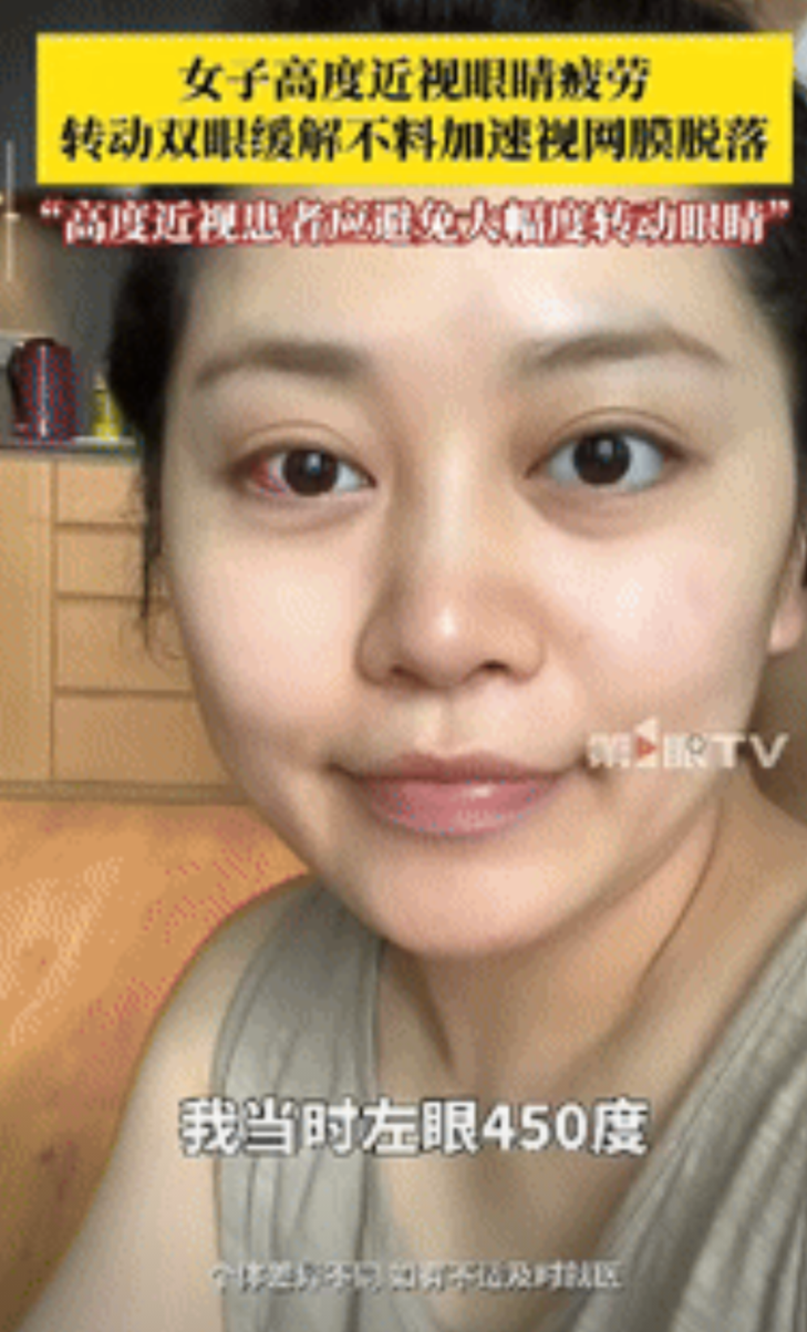“都是无知惹的祸!”吉林一女子高度近视,在网上刷到“飞行员转目法”后,就尝试用这种方法缓解眼疲劳,没想到,转动双眼后,突然发现眼里出现小块黑块,女子急忙就医,检查后发现女子视网膜脱落,并且双眼有不少裂孔,网友:到底是怎么转的,能转到脱落? 据第1眼新闻7月30日报道,这位女士本身就是高度近视,平时工作又离不开电脑手机,眼睛经常又干又涩。正巧刷到有人分享护眼妙招,说是飞行员都在用的转眼法,能有效缓解眼疲劳。