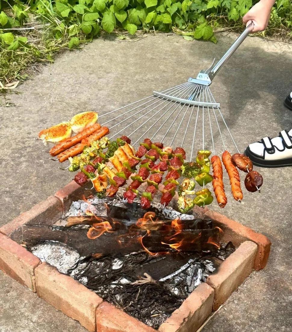 不得不说 这届的网友真的好厉害! 把耙子改造成烧烤架, 这创意往烧烤界一扔, 简直能炸开锅! 能琢磨出这玩法的人, 称一句天才不过分吧, 妥妥的脑洞天花板!