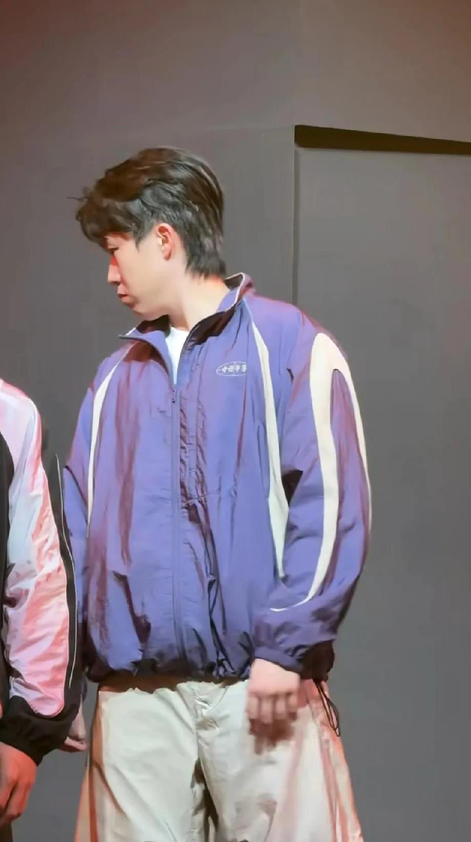 王楚钦压轴出场,不确定自己该站在哪里合适,左看看右看看,向前一步又退回来,最后选