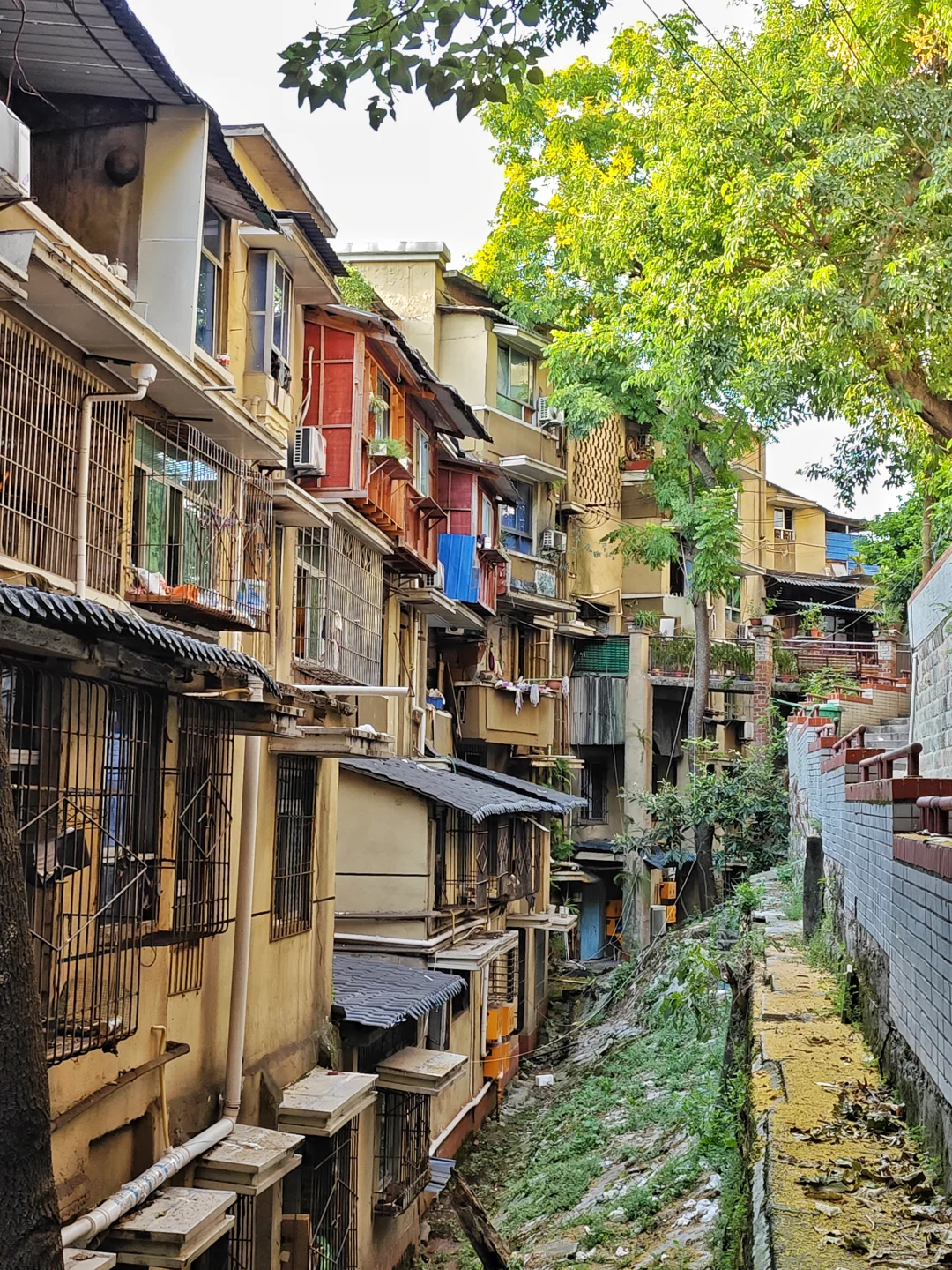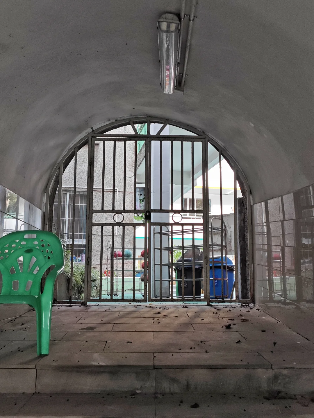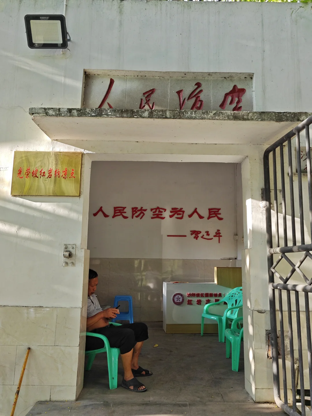 根据今年人防工程发布的纳凉点地图,石井坡地区有三个防空洞开放,但有个很大问题是没有具体地点,地图上也搜不到。我坐轻轨在石井坡站下车,一路问人,根据经验往特钢厂老家属区里面走,问了好几个人,走过中心湾,老双碑,一直走了将近半小时,才走到光荣坡这个防空洞。其实就在莲光校车站旁边,防空洞有个出口出去就是莲光校校园里面。