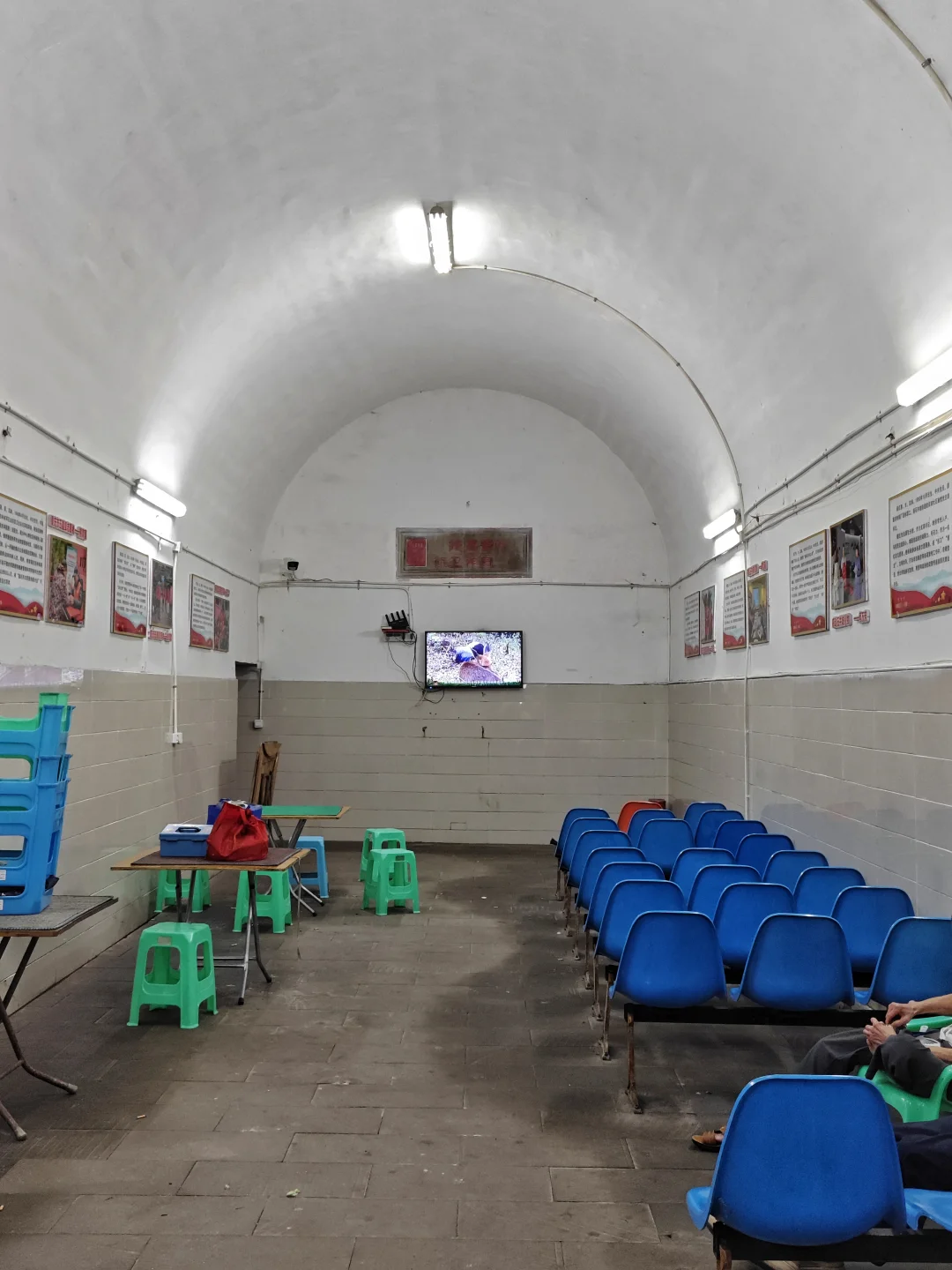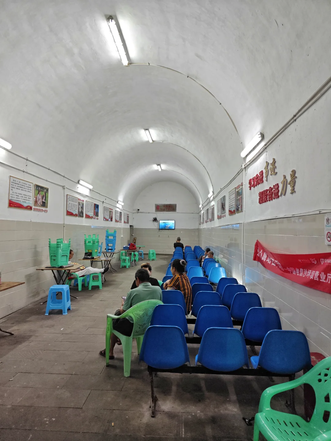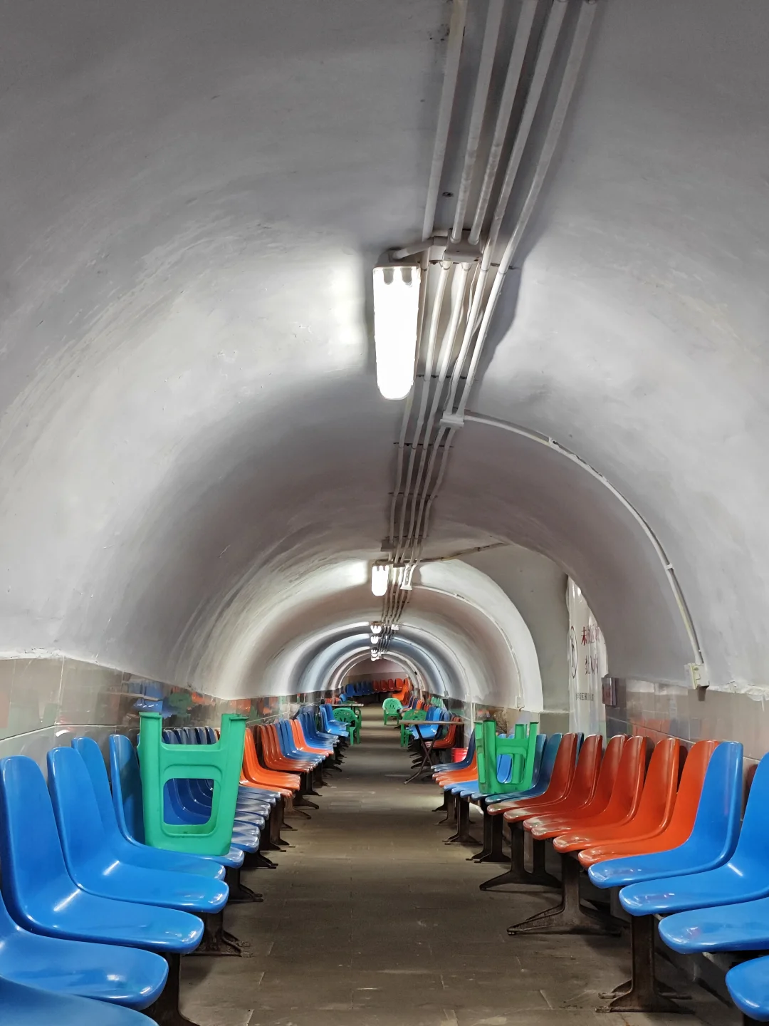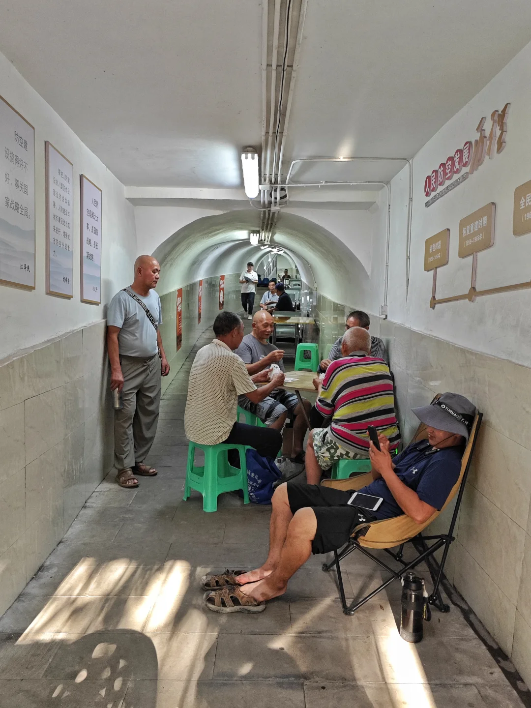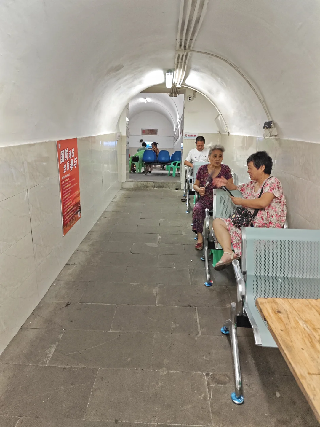 虽然破产了,但当年的防空洞仍然非常好用,虽然这个防空洞太矮,大部分高度最高只有一米八,但是里面凳子多,有水电,可以喝水充电看电视打牌聊天,很多附近军民在里面乘凉。当然几乎都是老年人,有两位老奶奶在聊天,我问其中一位,她说她80岁了,以前是特钢厂的普通工人,已经享受了三十年退休生活,现在一个月退休工资有3500,很知足。因为日常吃穿用度并不多,也有职工医保,能报销大部分药费,只要不生大病,就生活非常舒适了。确实目前企事业单位退休职工生活还行,当然公务员或者这些单位的干部退休工资就更高了。