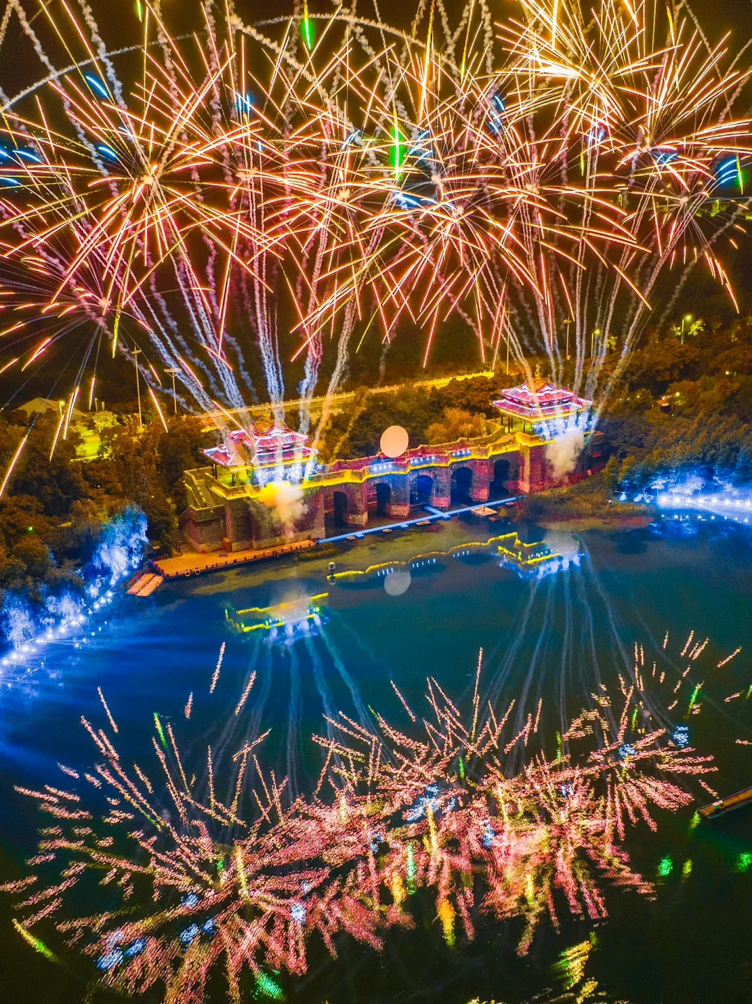 非常漂亮的夜景光影演出➕百万级别烟花秀🎆歌舞表演,非常震撼