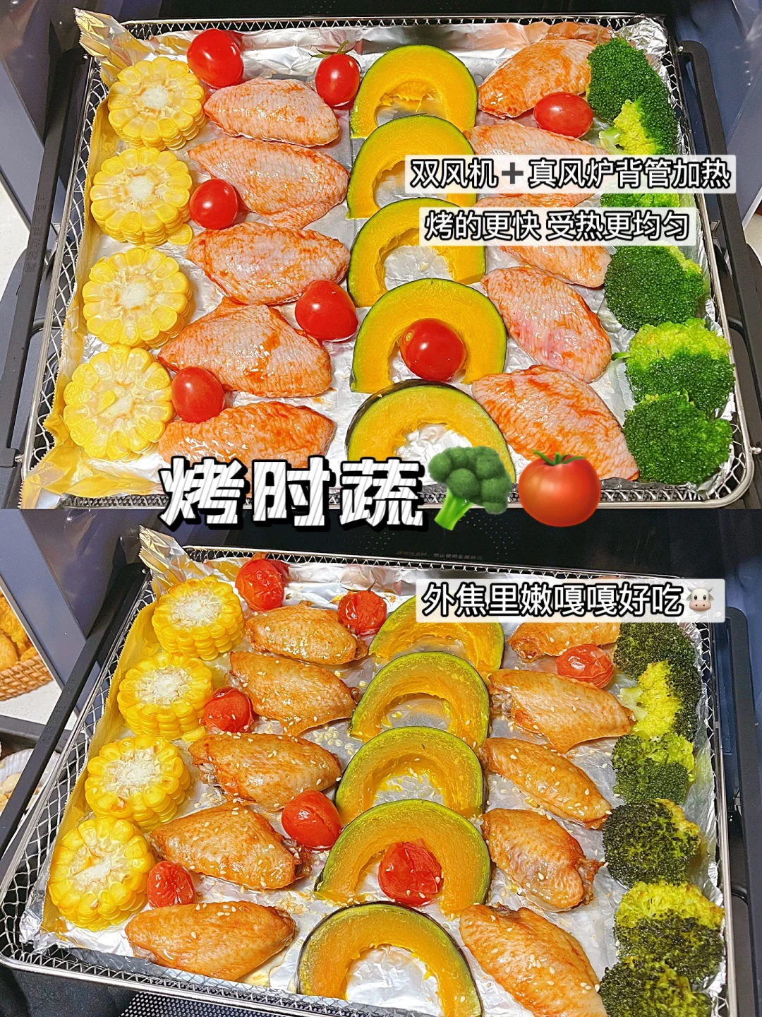 双热风循环♻烤出来的食物脱脂杠杠的,不油腻也不干巴🍟🥬