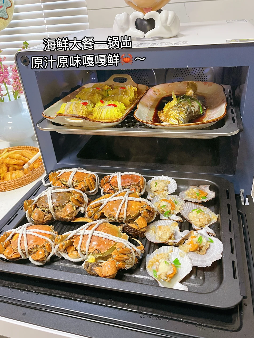 上下双层同蒸一锅出敲方便✨蒸出来的海鲜🦀原汁原味!巨鲜美~