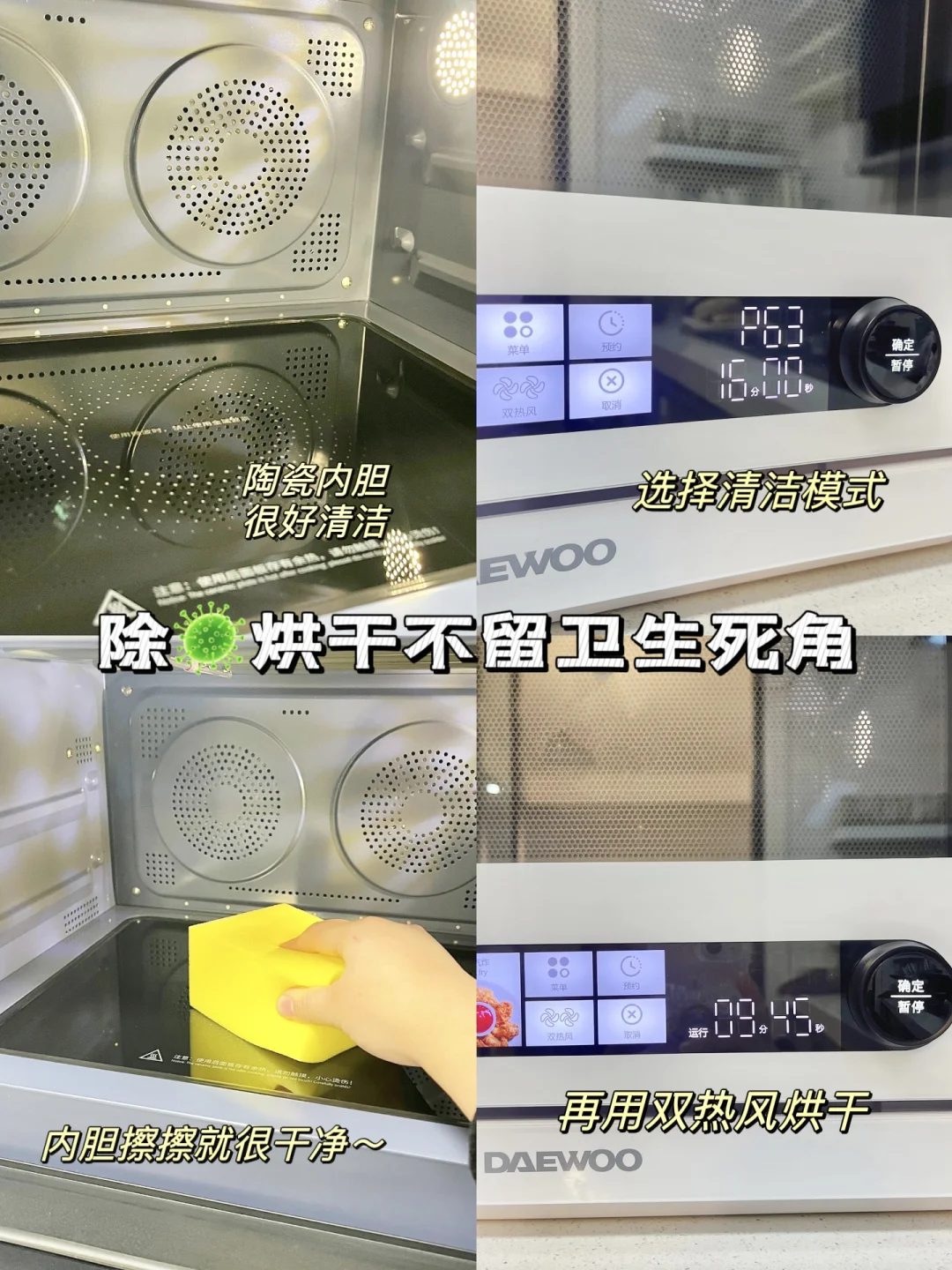 纳米陶瓷内胆用完一擦就干净✨它还能用一键除🦠➕清洁🧹!然后在一键双热风烘干🔥节能环保不藏🦠