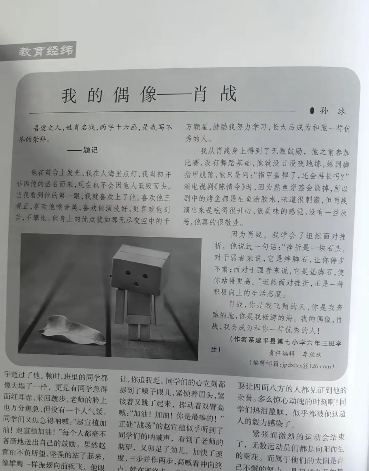 今天偶然间刷到了一个六年级的学生写肖战的题记【我的偶像肖战】,写的真的很好,短视