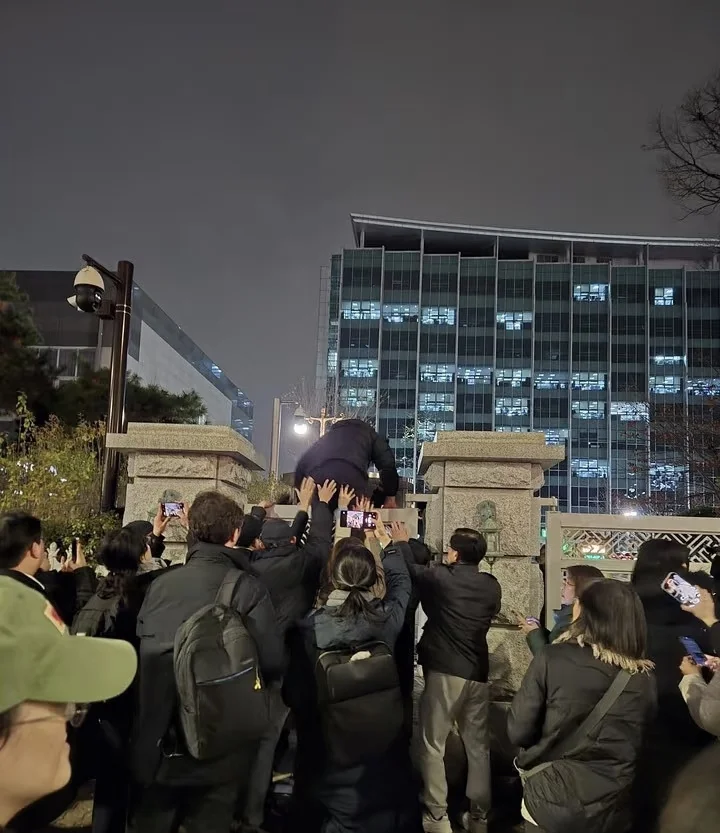 当李在明开始翻越翻墙的时候,整个戒严事件才来到的最为高潮的阶段,你们以为他只是翻越了一道墙吗,当然不是。