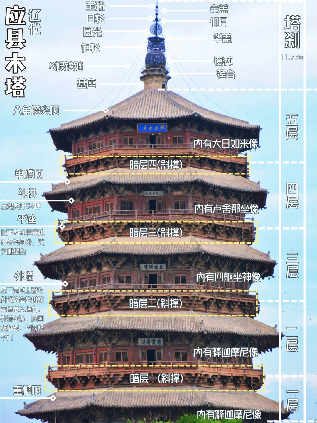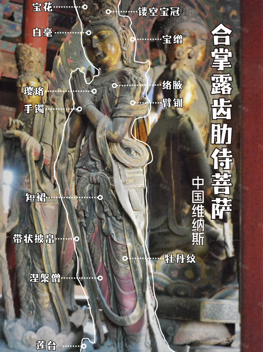 ✅薄伽教藏殿是整座寺院最古老建筑📍后壁的天宫楼阁是国内现有的唯一辽代木构建筑模型,还🈶露齿菩萨像美呆