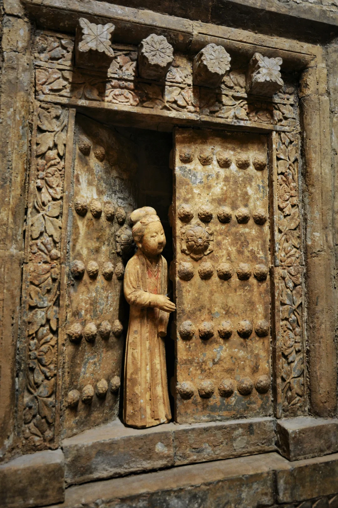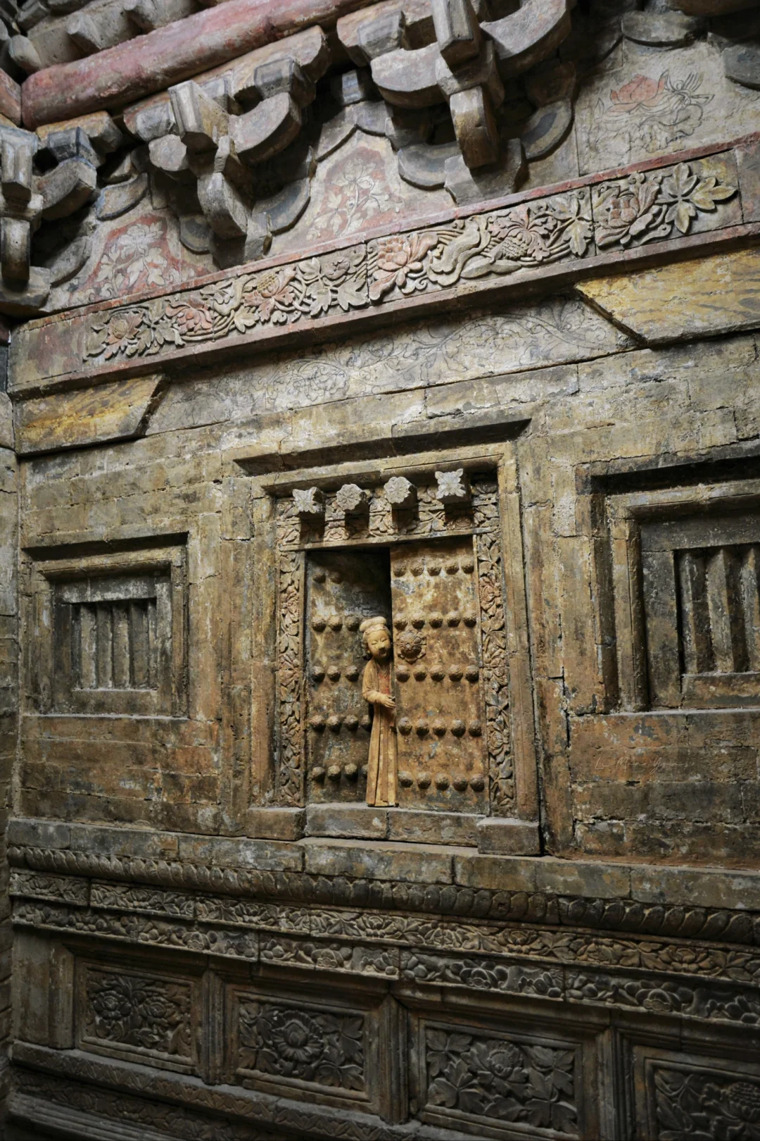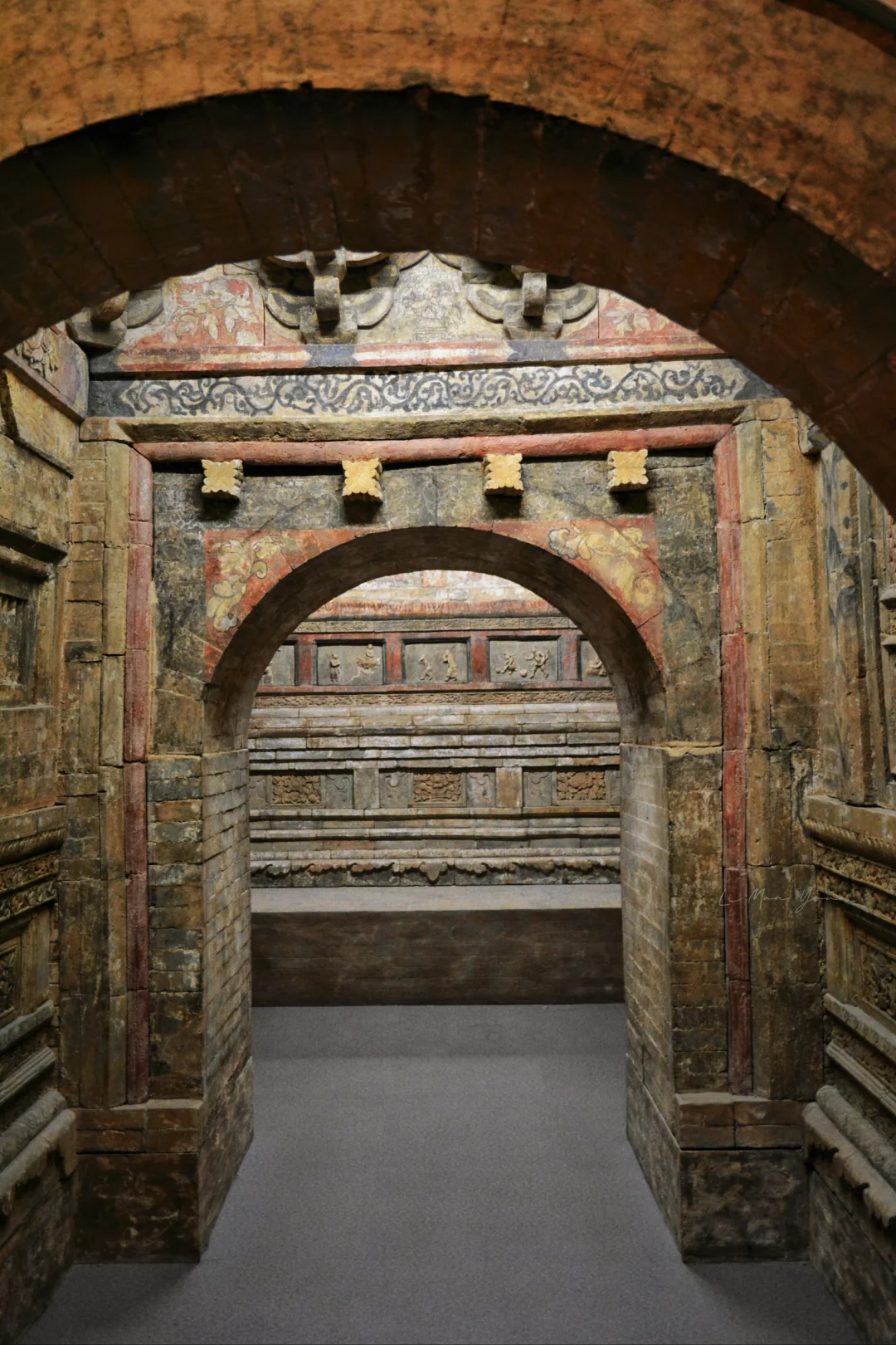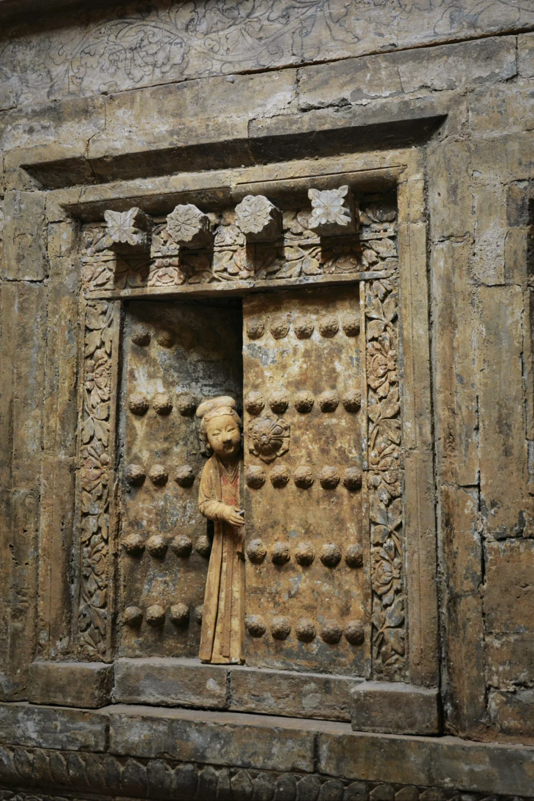 这个同样被平移进博物馆的砖砌仿木结构双室墓,最精彩的部分莫过于前室的🚪妇人启门
