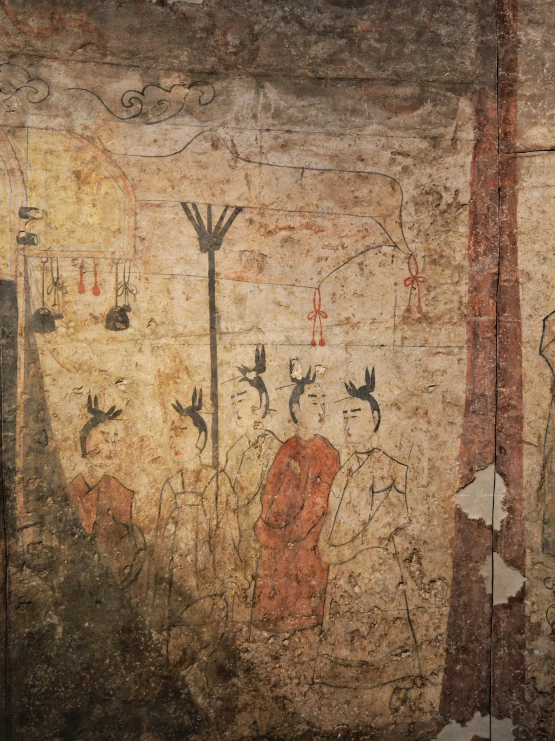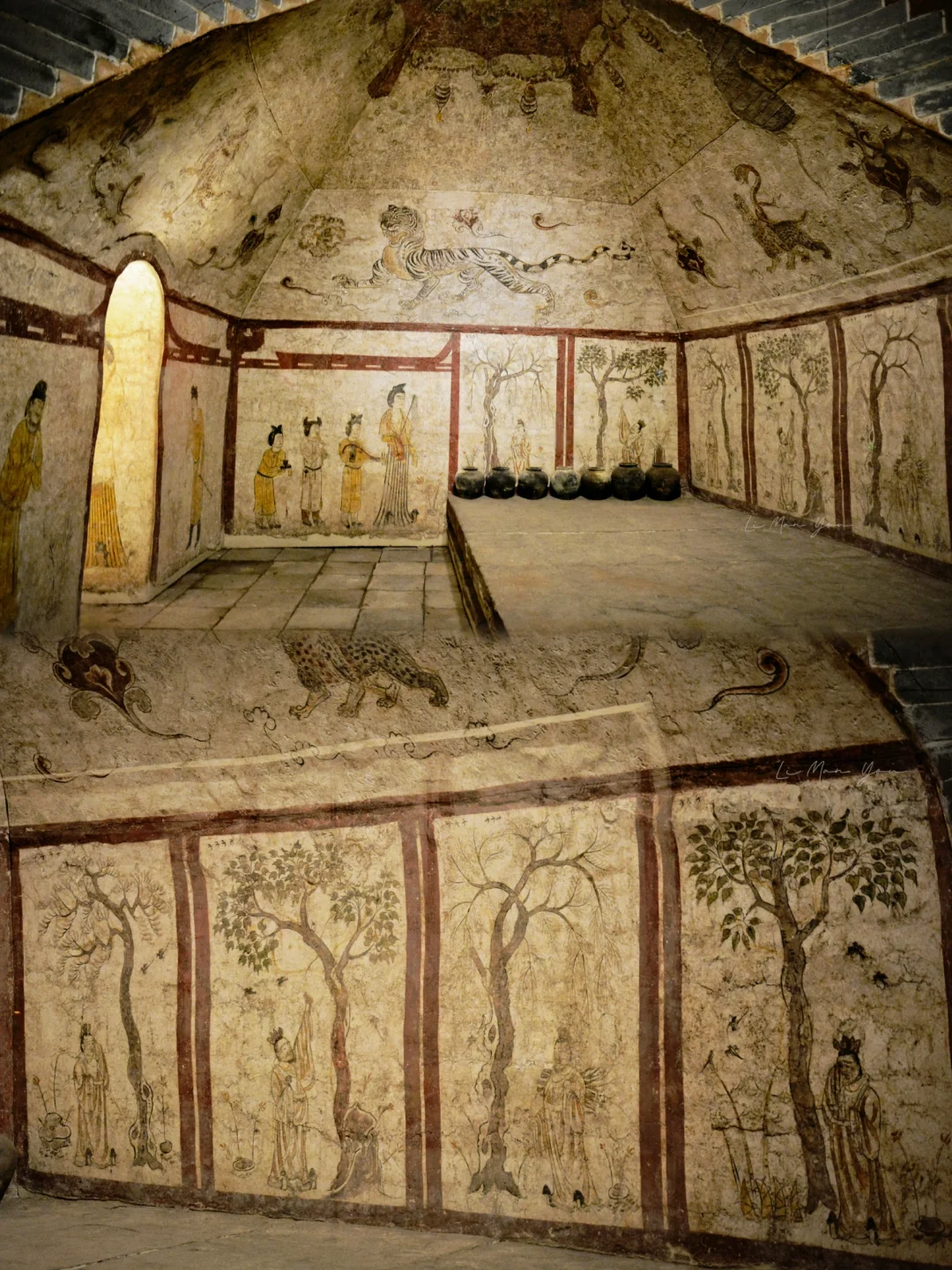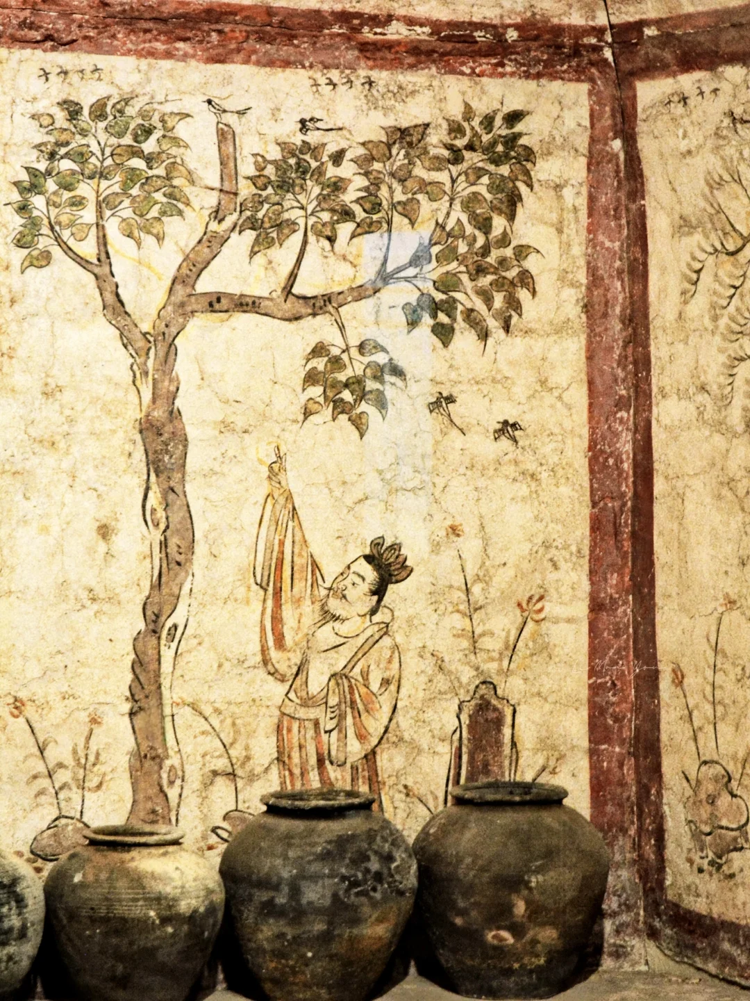 这个墓的壁画保存相当完好,并且瞪大双眼细看,你还会发现🔍古人在树下和你比✌!