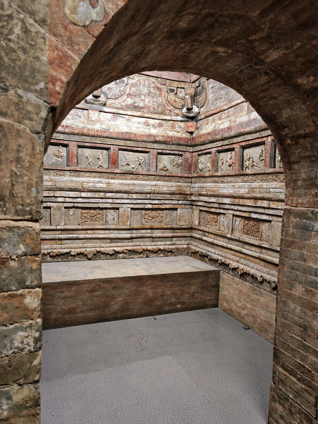 由墓道、封门、甬道、壁龛、墓室五部分组成的古墓,它直接被平移到了太原的博物馆里