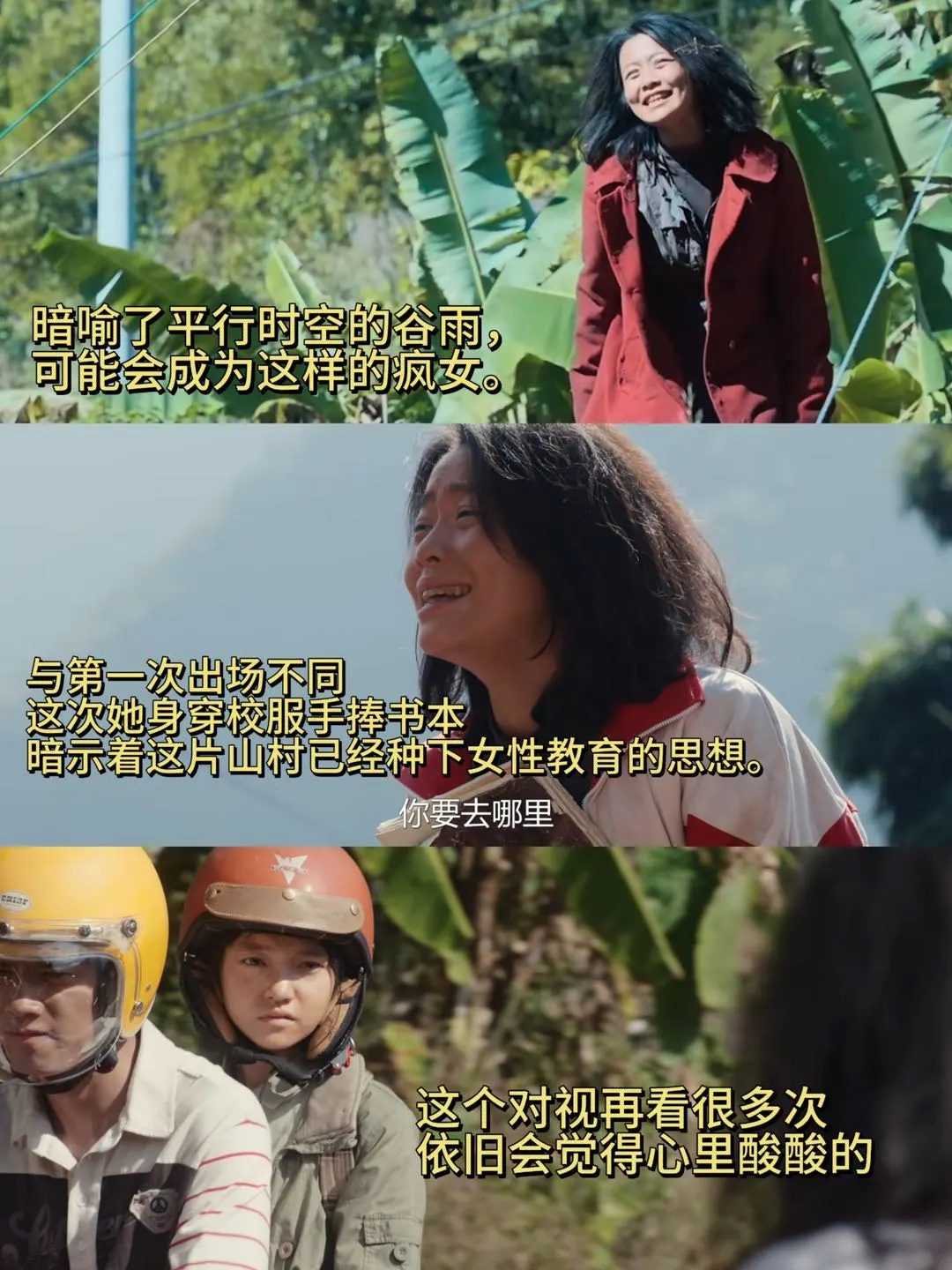 ‼而女高的出现彻底改变了谷雨的人生轨迹,最后一次出场时疯女身穿校服手捧书本,暗示着这片山村已经为姑娘们种下教育的种子。