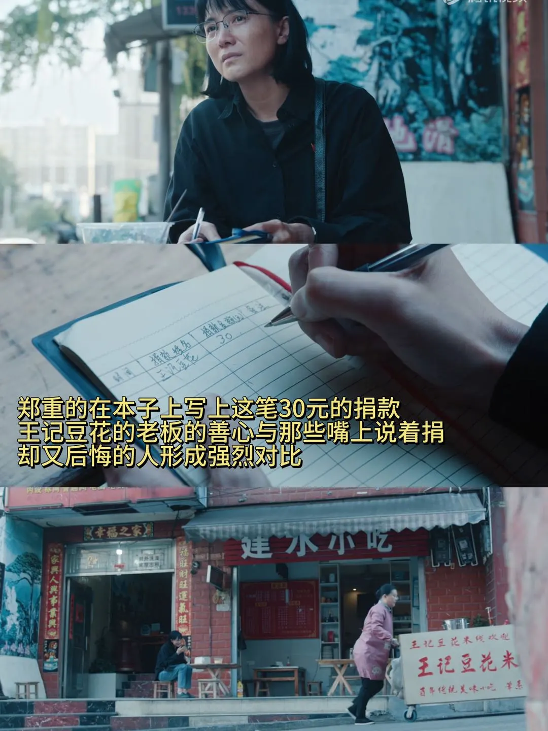 ‼配角及小人物的出场都会给我带来不一样的感动,王记豆花的老板捐款30元给女高,同那些口头说捐款却赖账的老板们形成鲜明对比。